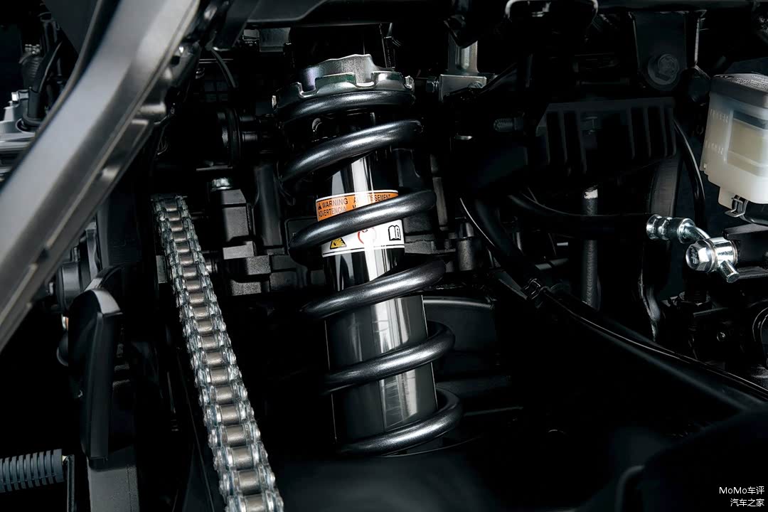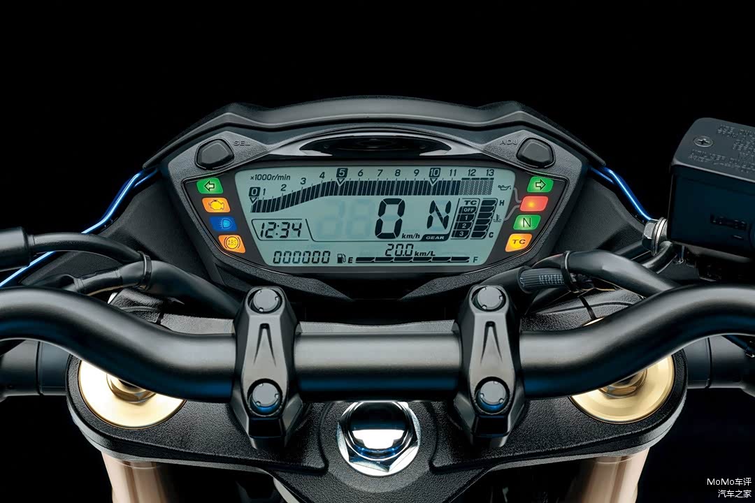 此外,预载可调的KYB倒置前叉,大尺寸浪花刹车碟搭配日清制动,还有单色液晶仪表和ABS算是普及的基础配置,不过,卤素的大灯依然没有赶上潮流。