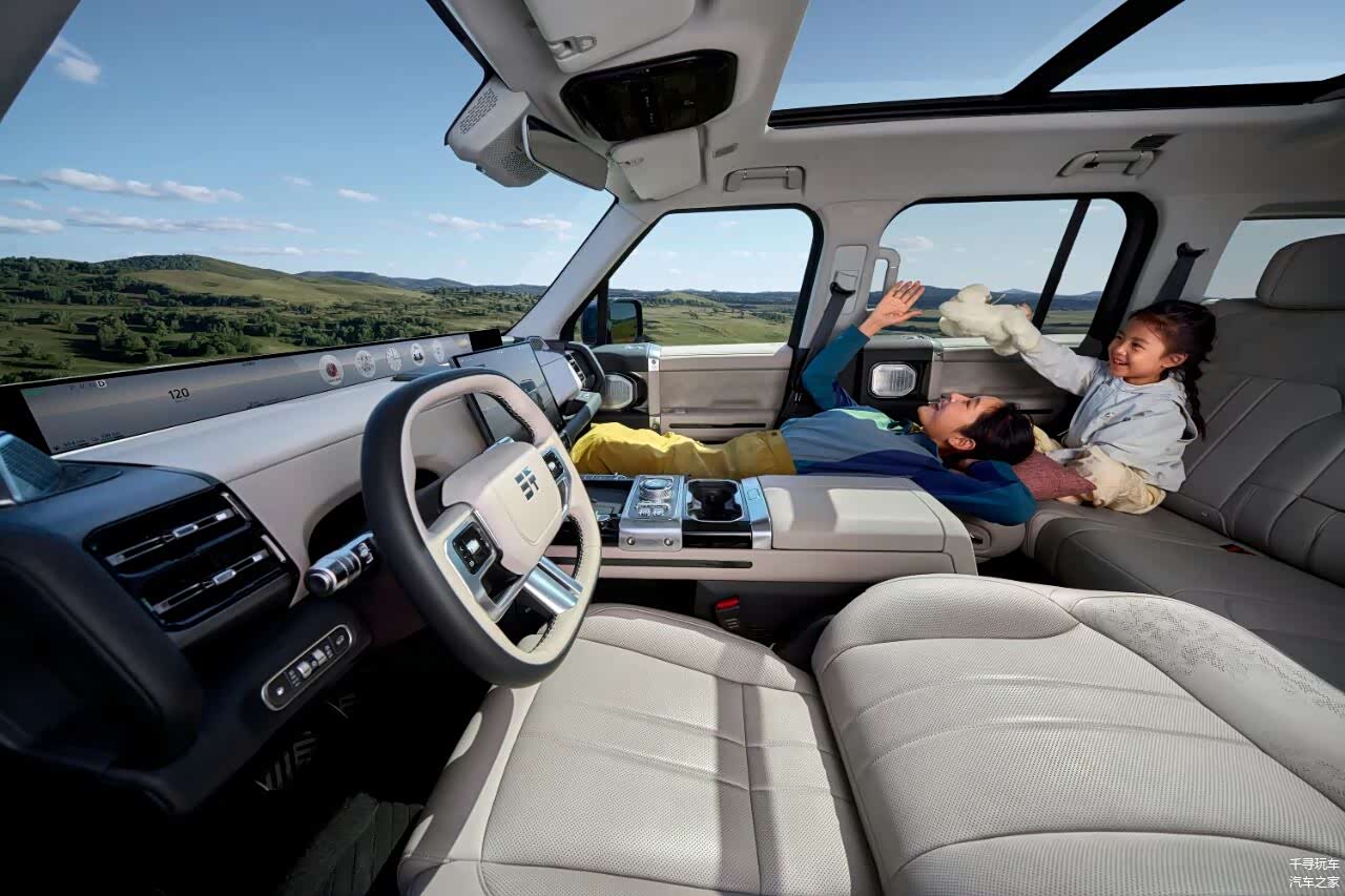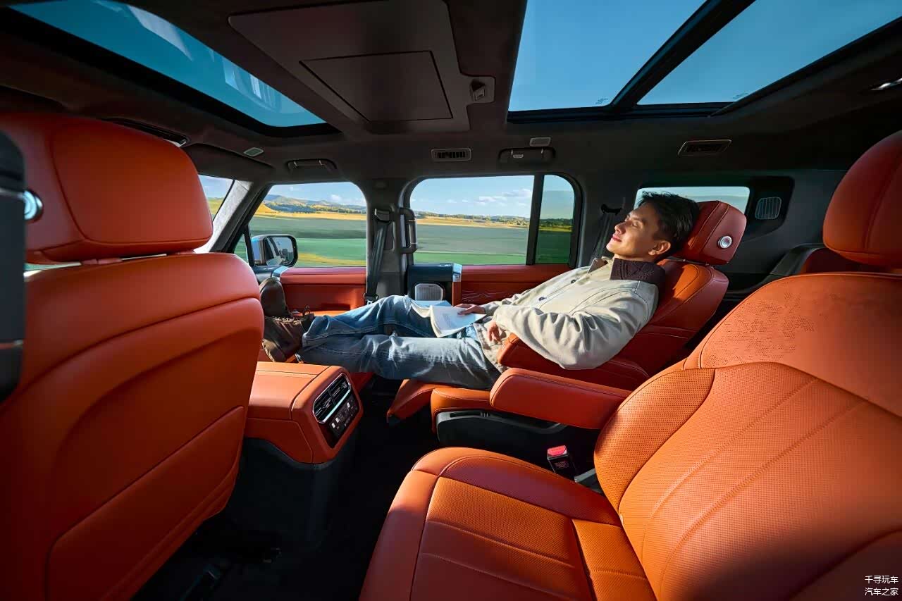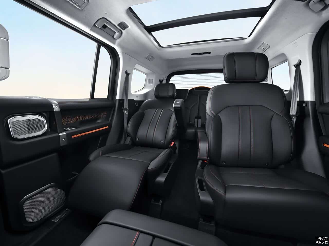 别看它是硬派越野,日常用起来一点不 “糙”。车内空间宽敞,5 座、6 座版本都能满足需求,尤其是 6 座版的第二排独立航空座椅,带电动腿托、通风、加热、按摩功能,长途坐着跟 “头等舱” 似的;右侧座椅还能联动副驾一键放平,调整坐姿超方便。