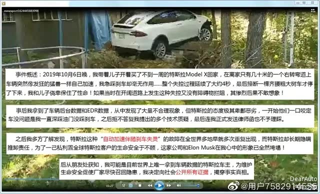 加拿大Model X事故车主在微博上讲述事件经过。