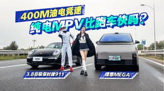 400米油电竞速,理想MEGA/3.8自吸保时捷911,纯电MPV比跑车快吗