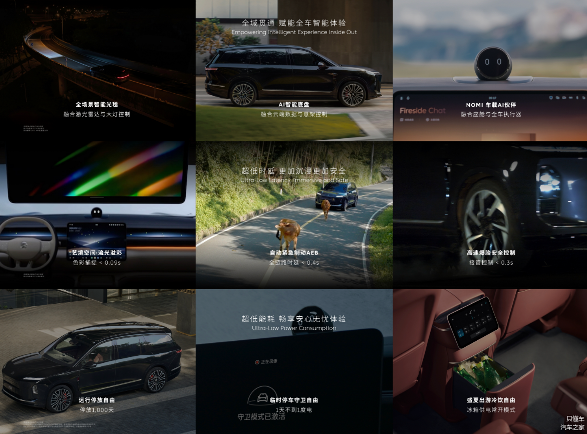 座舱舒适性配置方面,全新蔚来ES8配备21.4英寸Mini-LED吸顶屏,拥有1000尼特高亮度和杜比视界,保证观看视野;第二排同时配备了双LED折叠化妆镜,也有支持零下2°的8.8L冷暖冰箱、27扬声器音响、智能五区空调、智能隐私玻璃等的豪华配置。