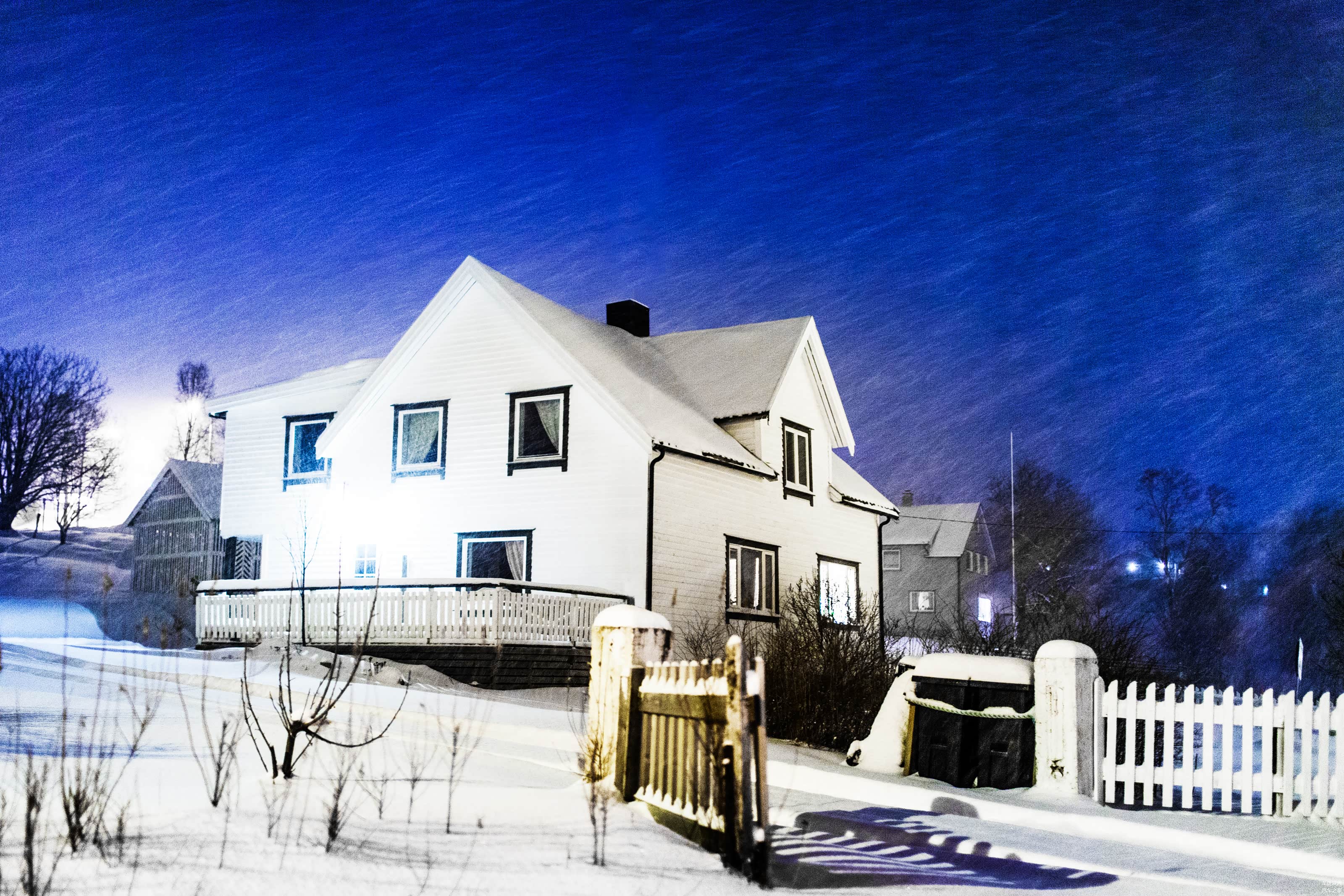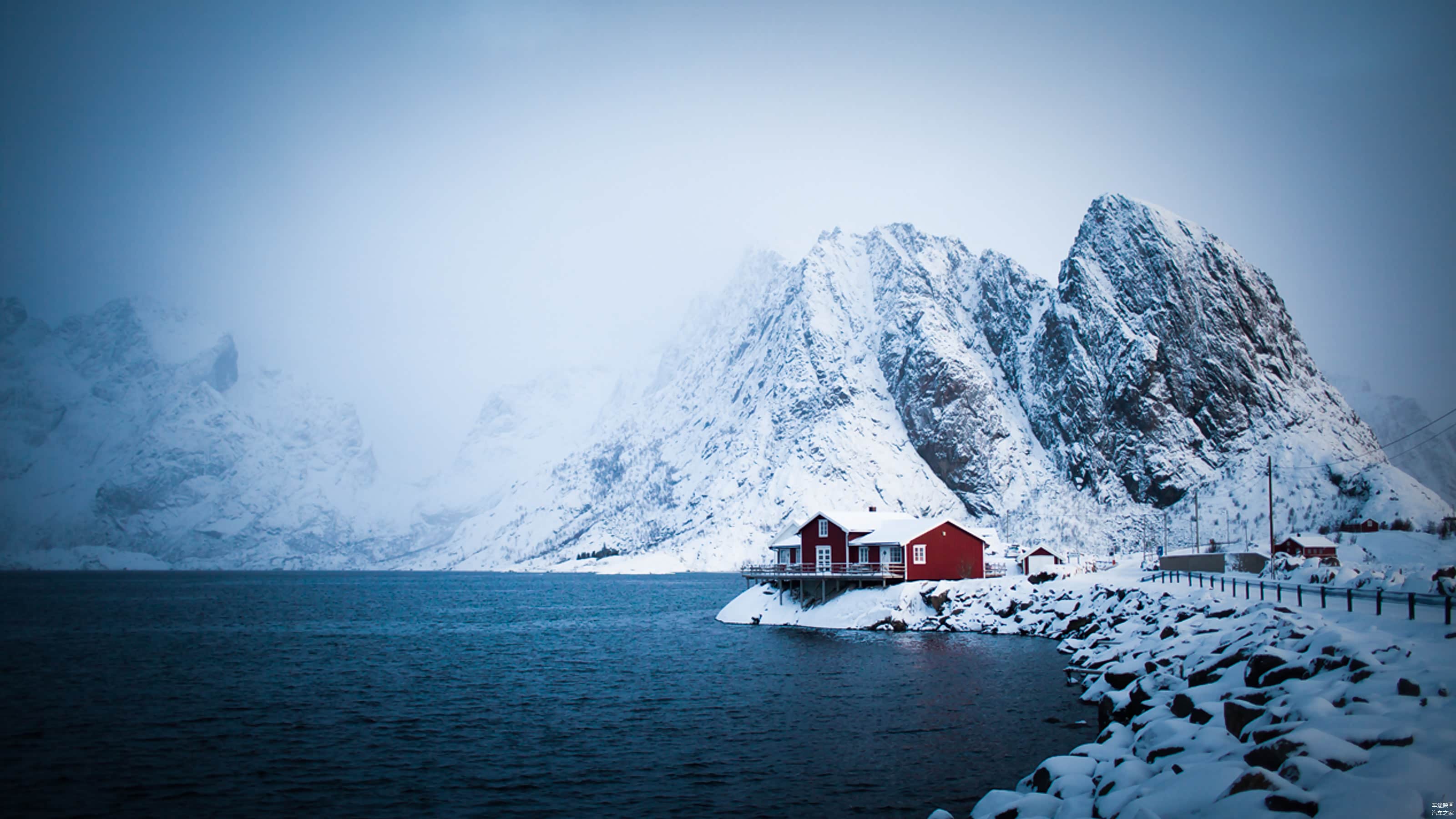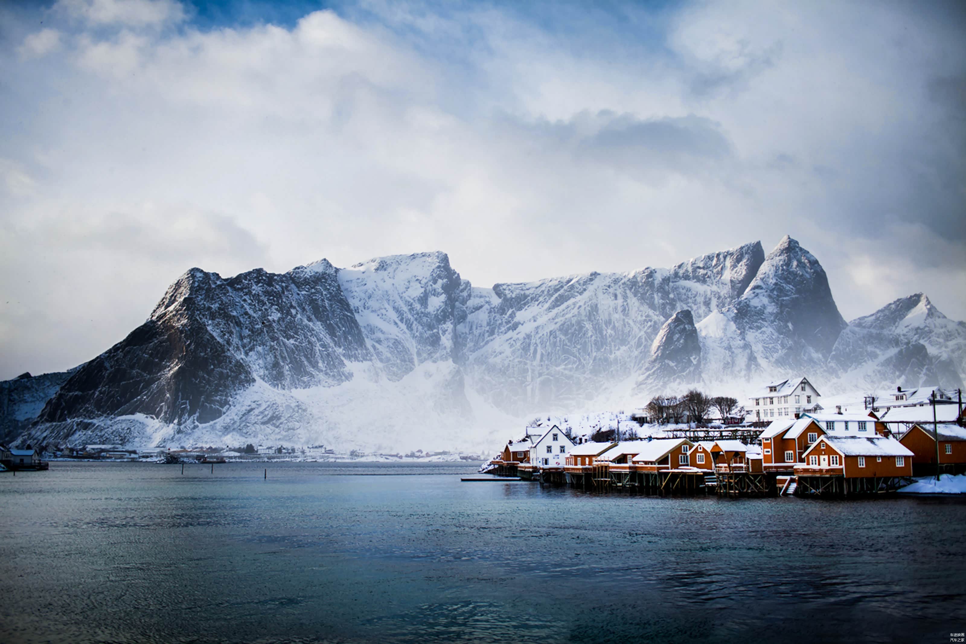 穿过暴雪公路,我们住在眼前的这座小屋之中,轮胎压出了深深的雪印,在微光的照耀下更为梦幻。坐在小屋中,远望刚刚穿过那片暴雪的云层,好像鬼门关里走过了一遭。还好,我们的旅行在温暖的车内,但回想几百年前的当地居民,他们是怎样越过那么多的高山与峡湾,而在这里生活驻扎了下来呢?