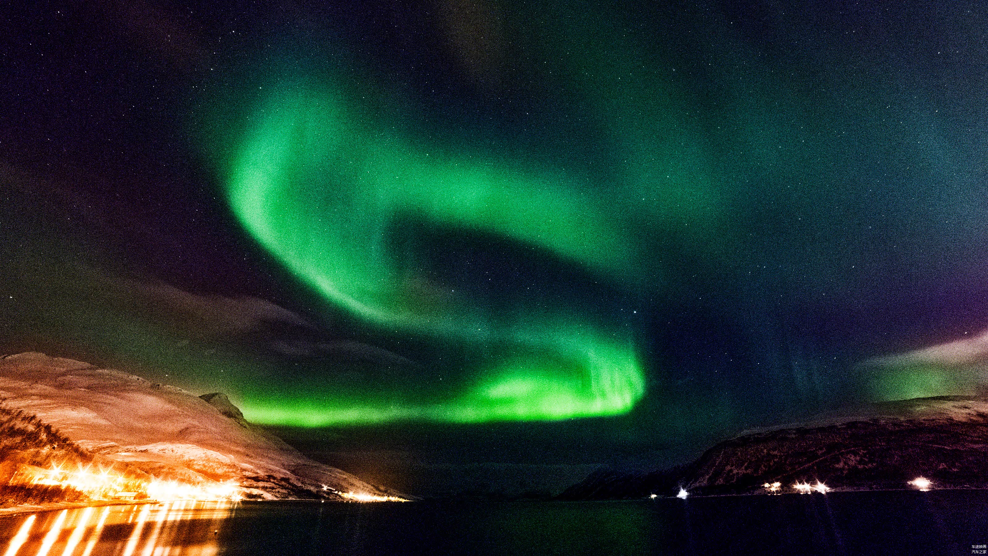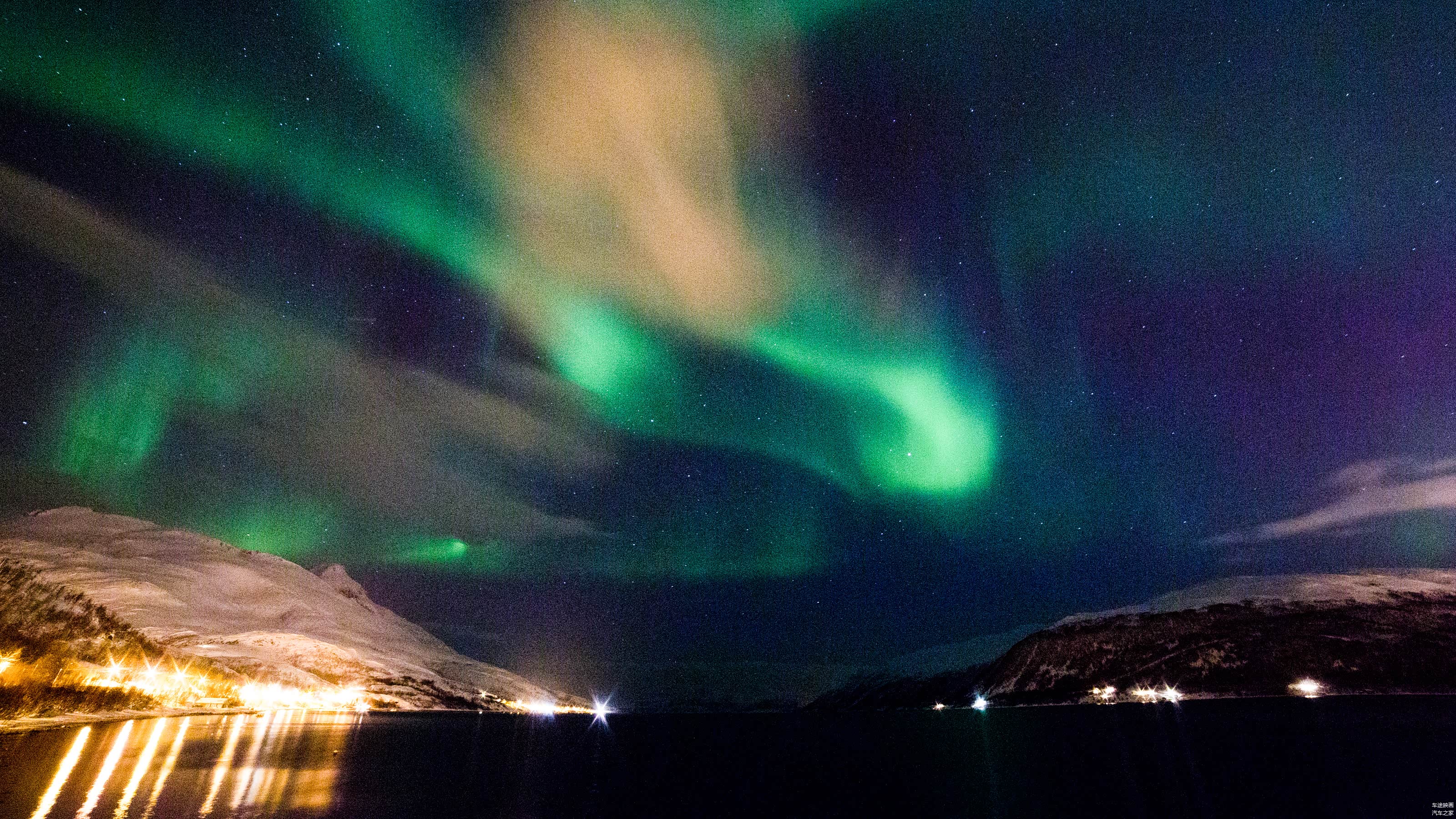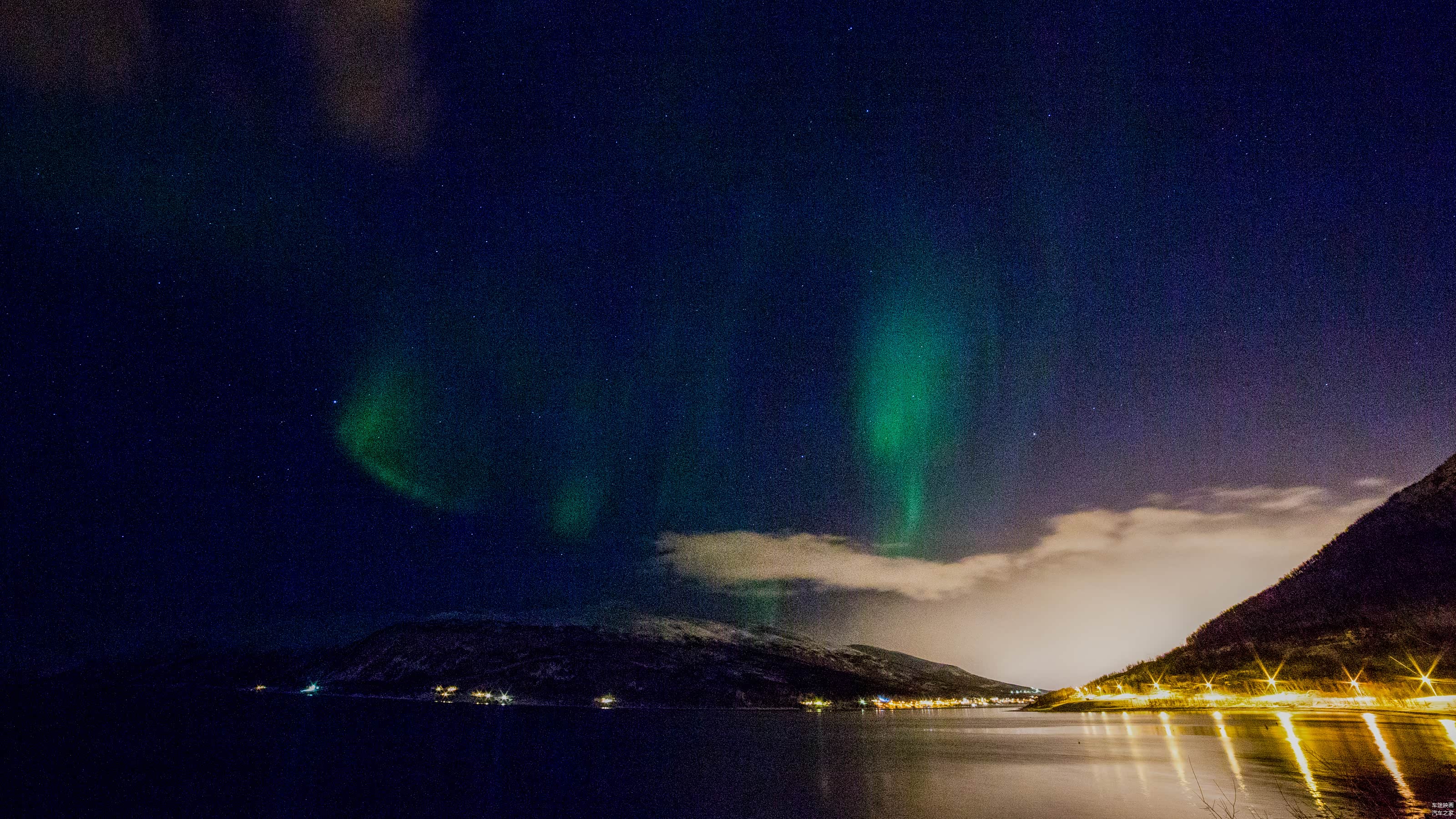 车辆行至郊外,天空的再次放晴,又给了我希望。只见一位老外停下车,在天窗上支起了架子,我猛的往道路的右侧看,天空的一小束绿光,终于再次的浮现!之后,慢慢的扩散,形成了一个S型,接着又继续扩散,最终布满了整个天空。整个过程一个小时,最佳观测仅有20分钟。或许,这次极光来的太突然,我停下车,找到拍摄点,就鲁莽的锁定了快门。最终,过高的感光度以及较小的光圈,让整个图片充满了噪点,也算留下了一个小遗憾吧。