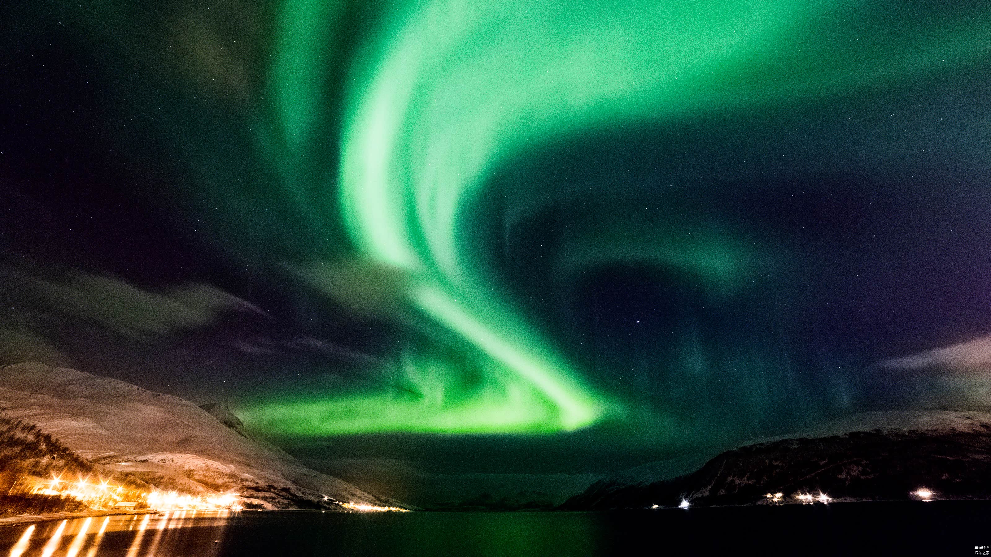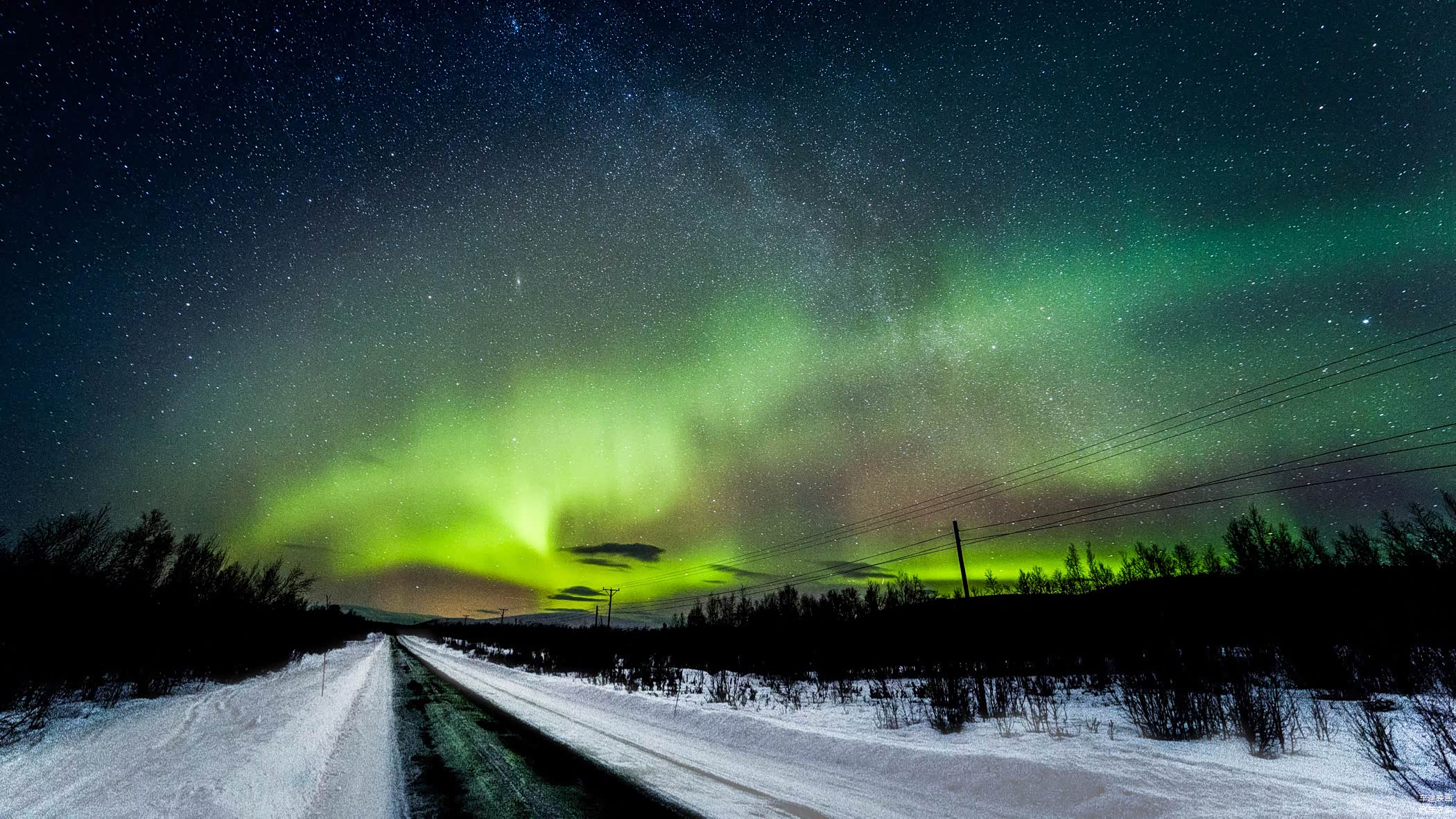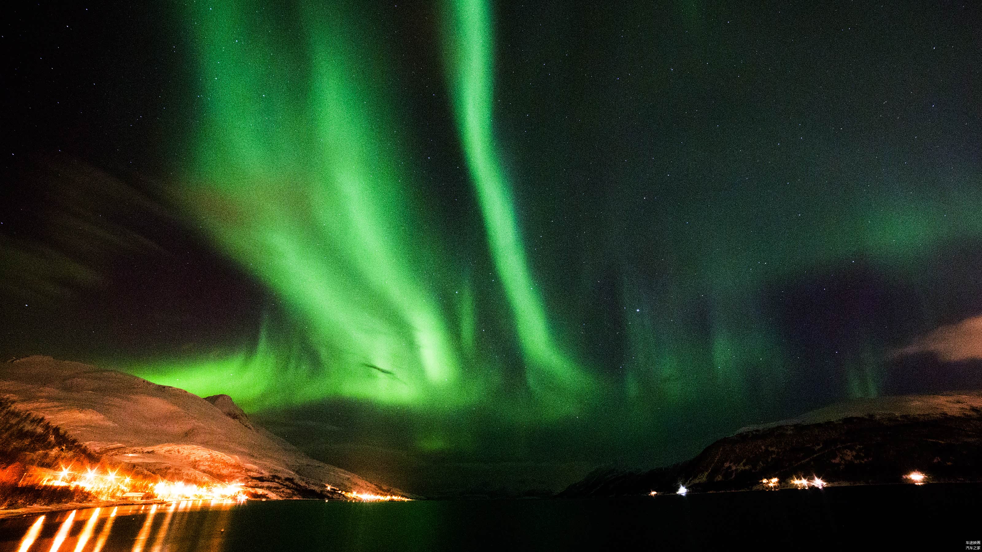 车辆行至郊外,天空的再次放晴,又给了我希望。只见一位老外停下车,在天窗上支起了架子,我猛的往道路的右侧看,天空的一小束绿光,终于再次的浮现!之后,慢慢的扩散,形成了一个S型,接着又继续扩散,最终布满了整个天空。整个过程一个小时,最佳观测仅有20分钟。或许,这次极光来的太突然,我停下车,找到拍摄点,就鲁莽的锁定了快门。最终,过高的感光度以及较小的光圈,让整个图片充满了噪点,也算留下了一个小遗憾吧。