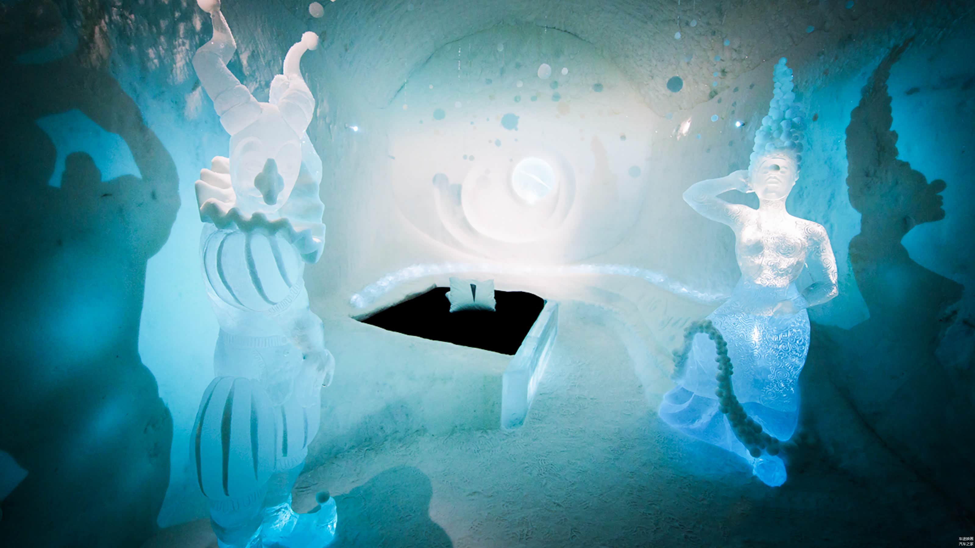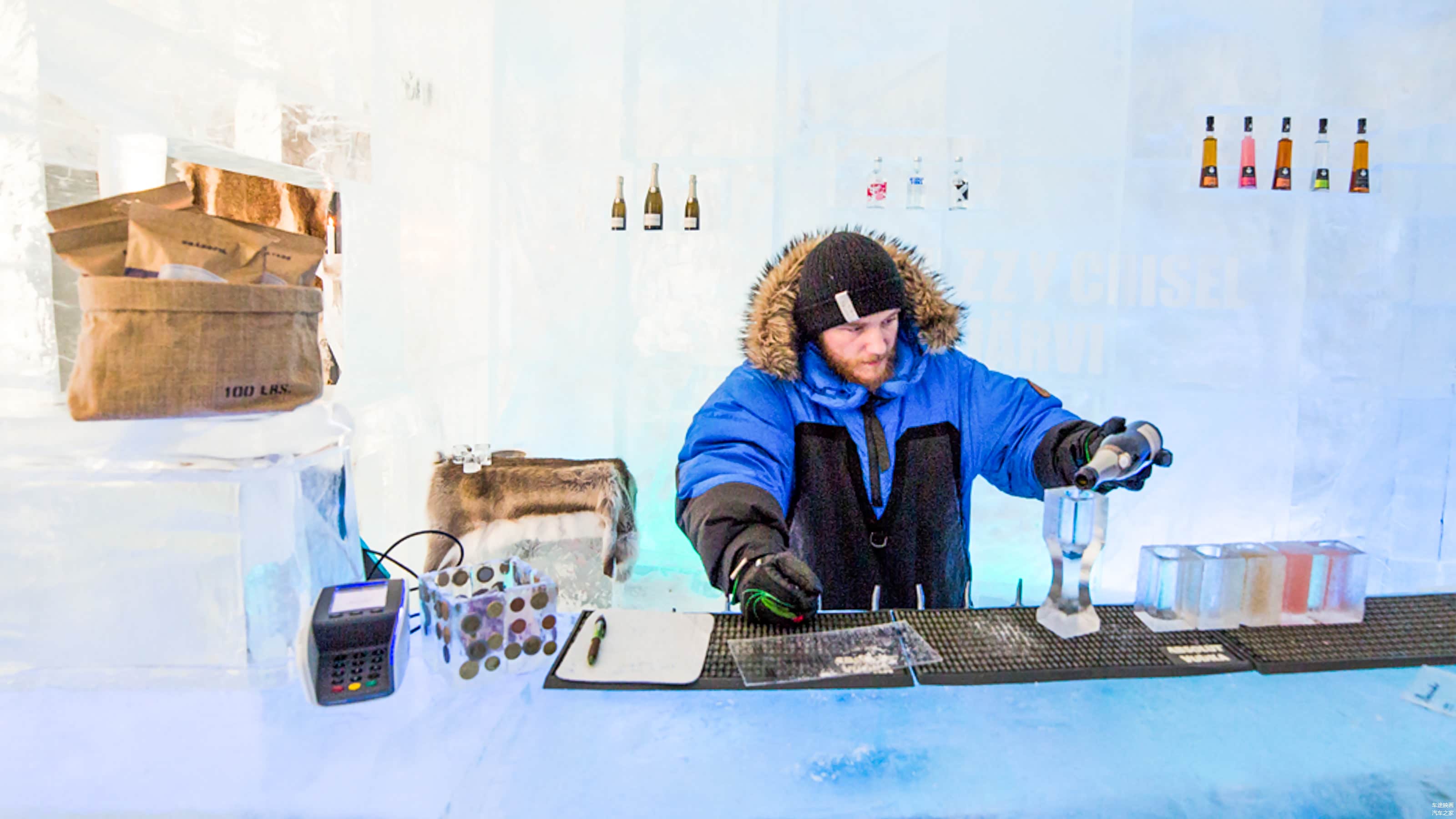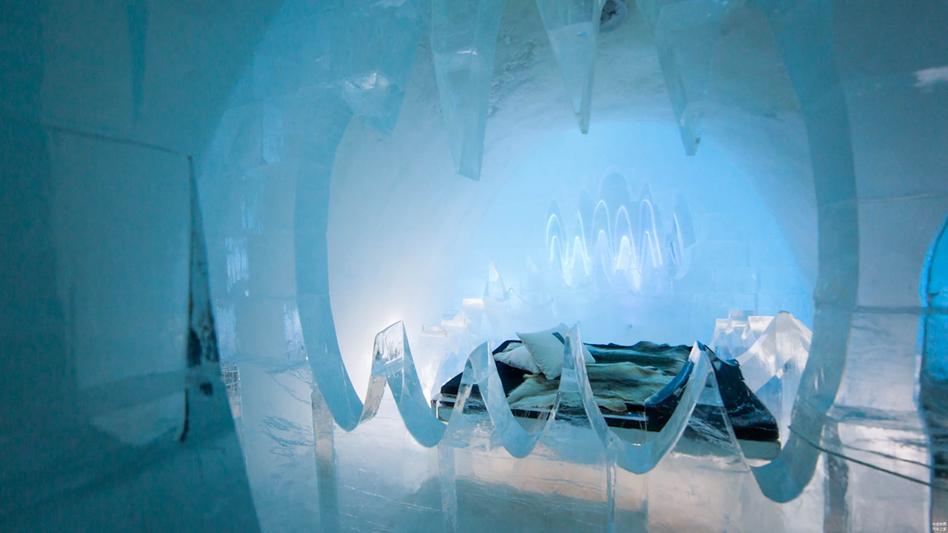 Ice Hotel每年冬天建成,春天融化,整座酒店回归河流。每年,艺术家、工匠们总要想着如何才能玩出新鲜的花样。冰制成的酒杯,来一杯82年的鸡尾酒压压惊?看到这里,在温暖的房间都不由自主的打着寒颤。