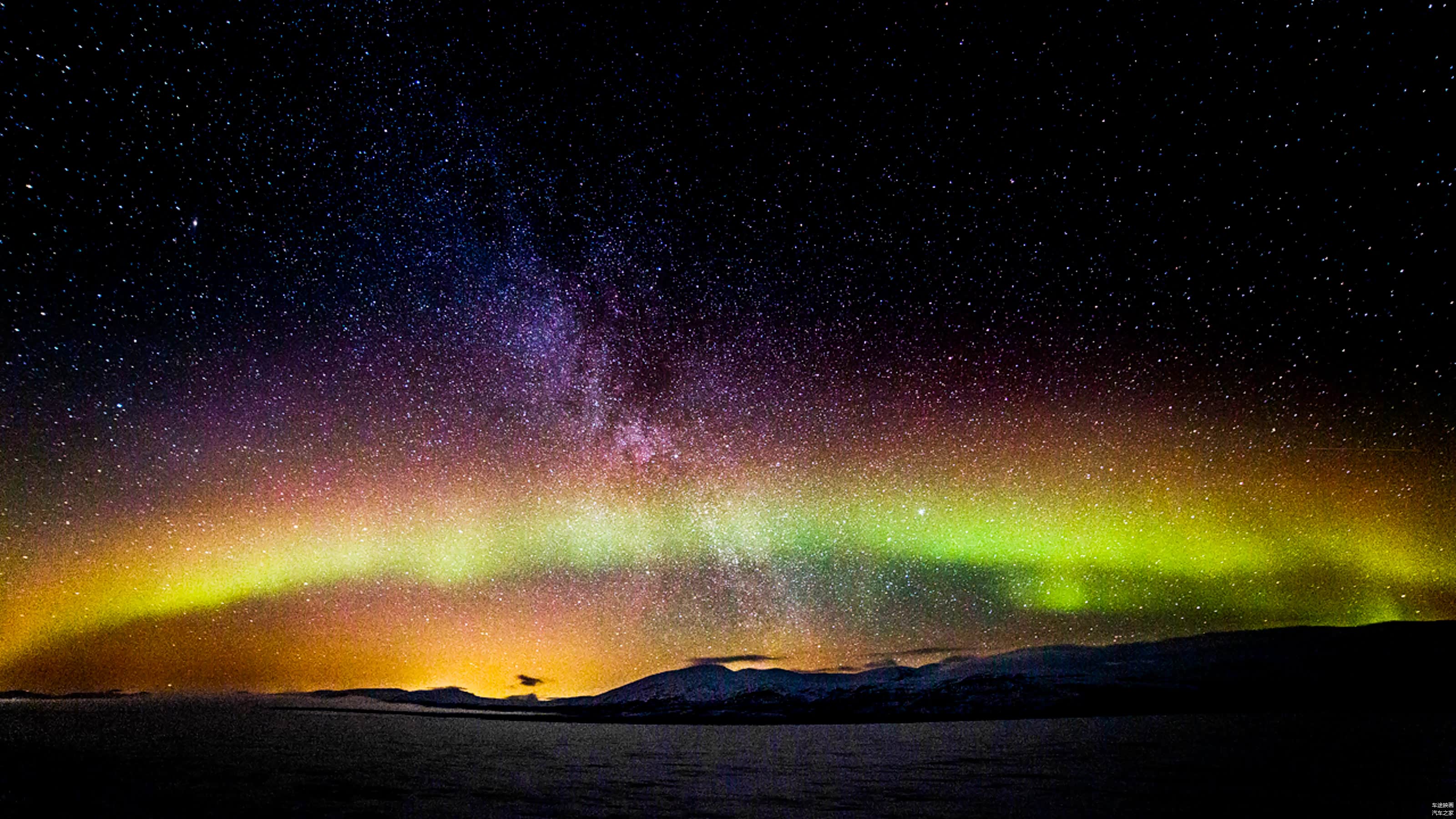 路过瑞典阿比斯库这座冰湖,晴朗的夜空让我坚信,极光会与我再次的相遇。这一次的极光明显微弱许多,但好似彩虹的极光,呈现出了多种颜色。银河从中穿过,好像拉满弓弦之箭,难倒它来自爱神丘比特?