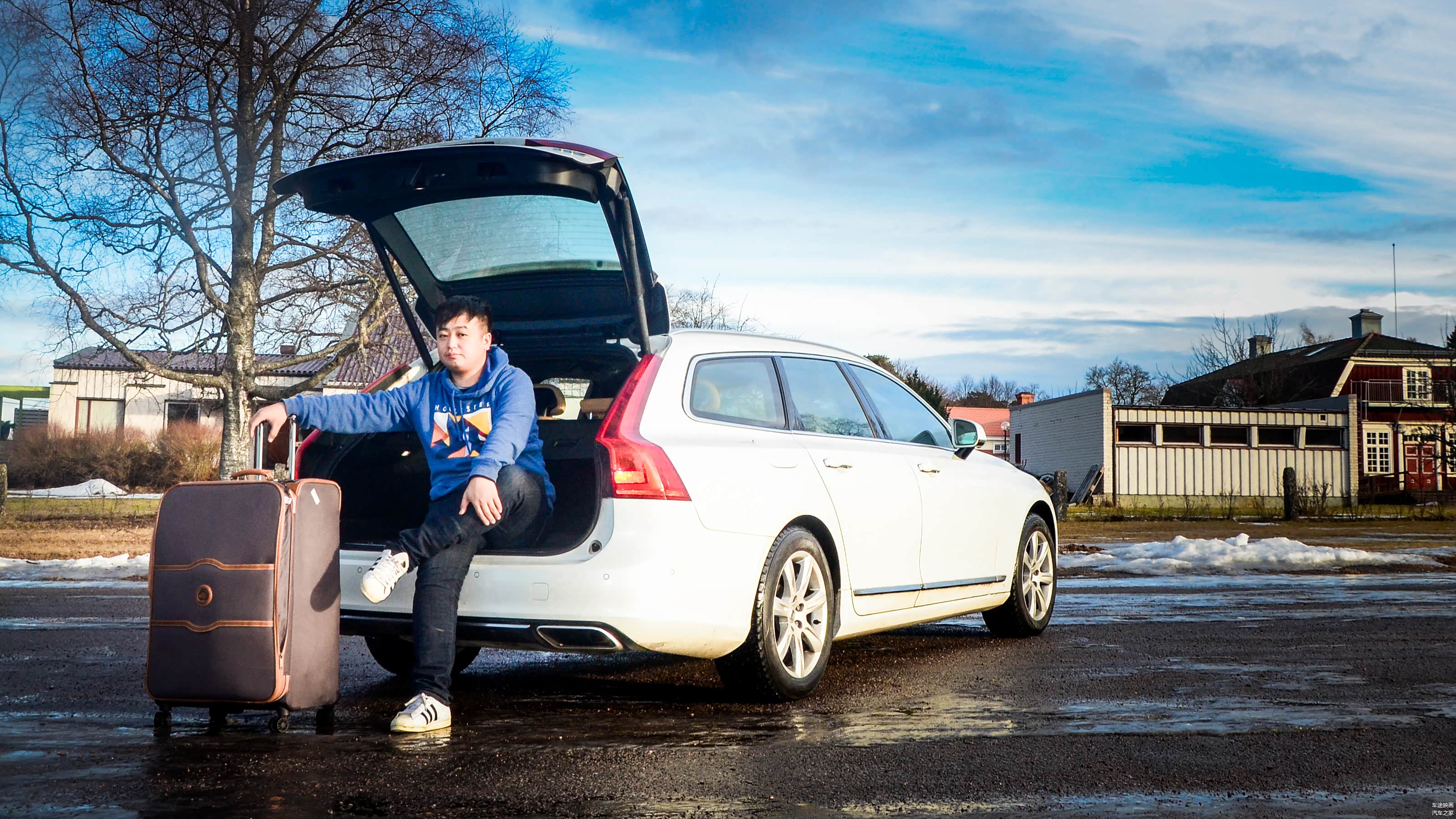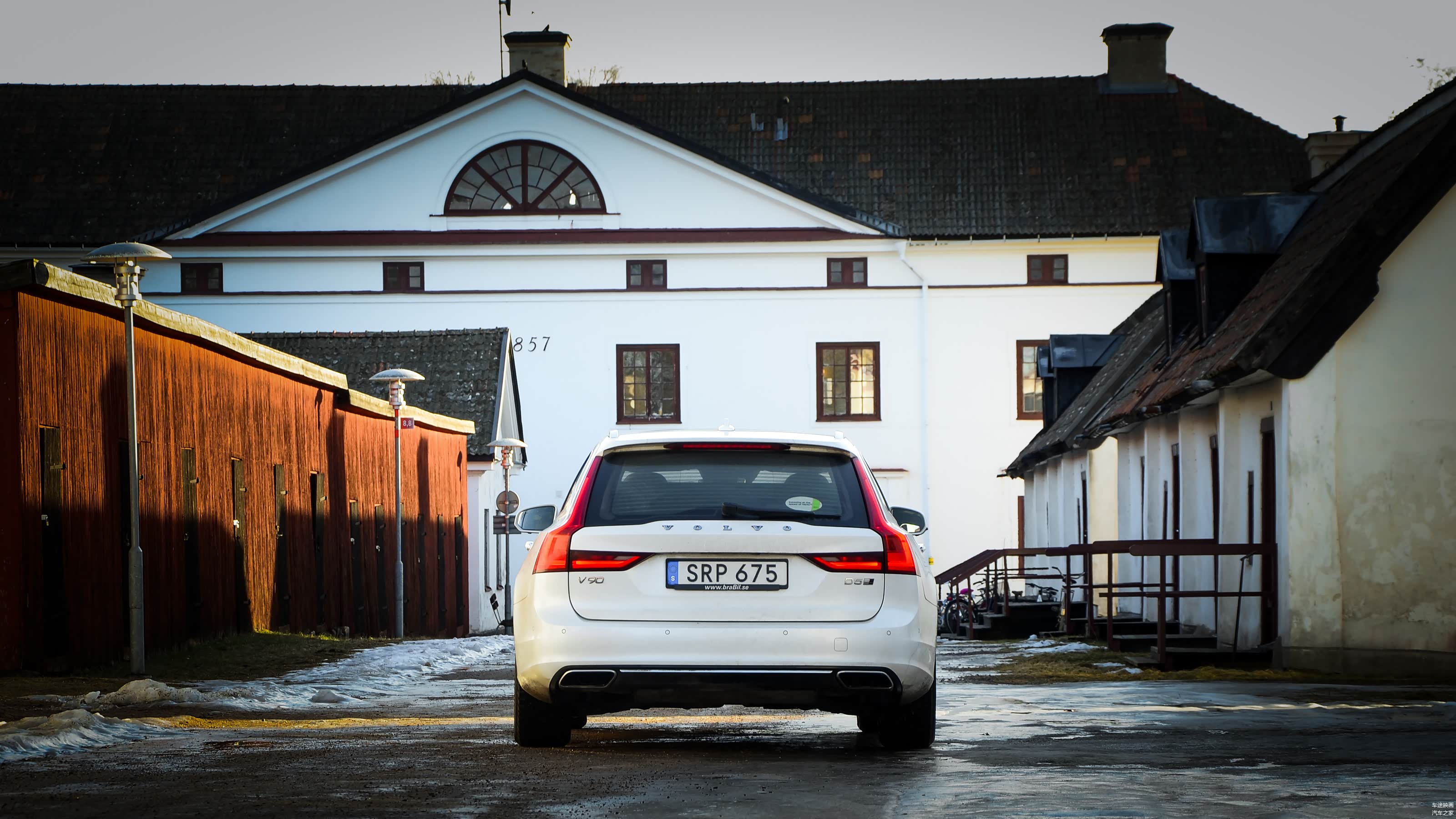第二天一早醒来,我就按耐不住内心的激动,一大早就起来拍车。2月的北欧,本应冰天雪地,但这里却下起了淅沥沥的小雨,路面成了一个大泥潭,一到晚上又冻成了溜冰场。还好,法律规定冬季必须更换雪地轮胎,安全还是很有保障。就是跑了一晚上的V90,脏成了一个泥猴。这里的温度比北京甚至还要高,总让我怀疑我来了假的瑞典,难倒是位于北京延庆区的北欧小镇?