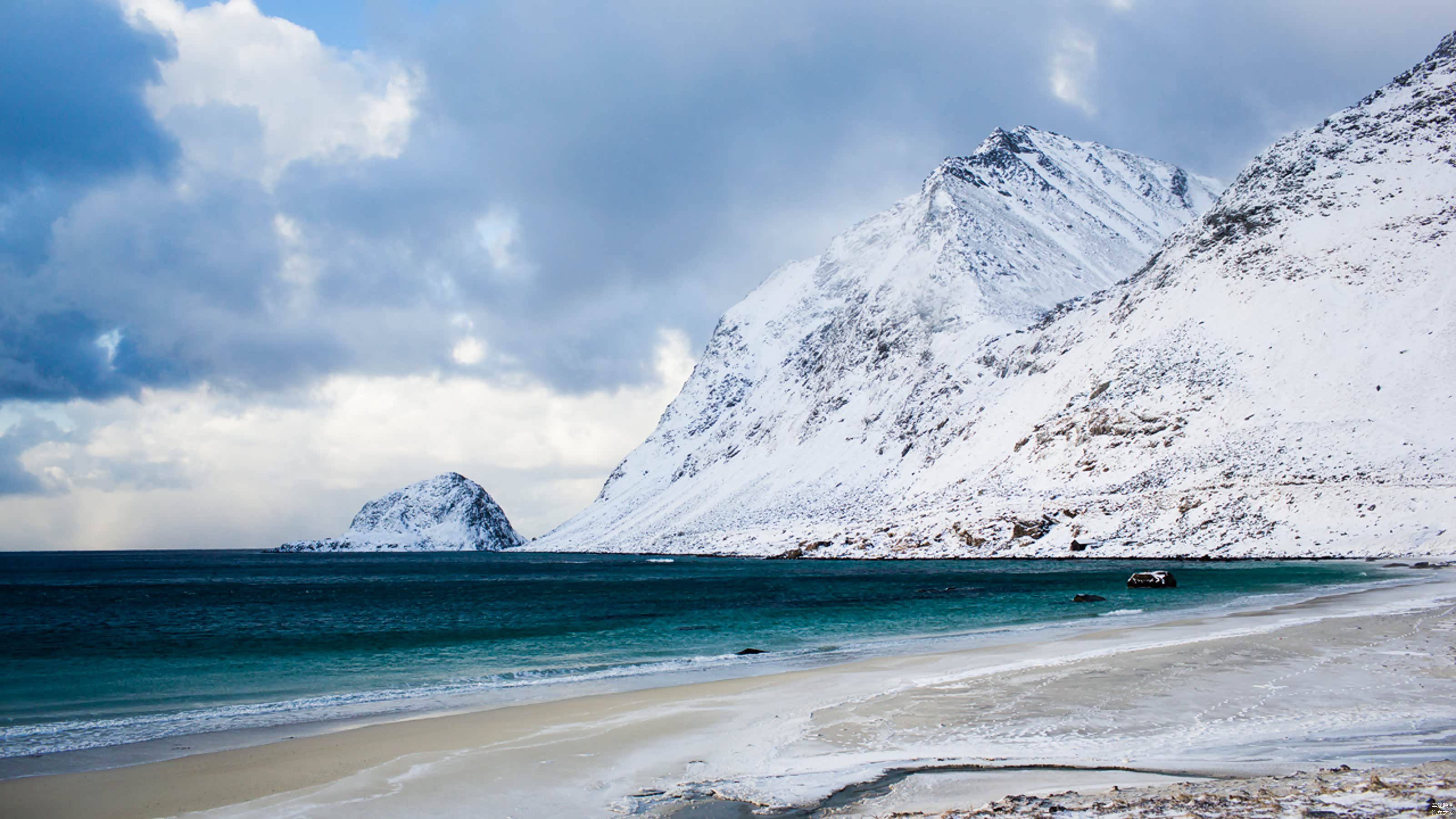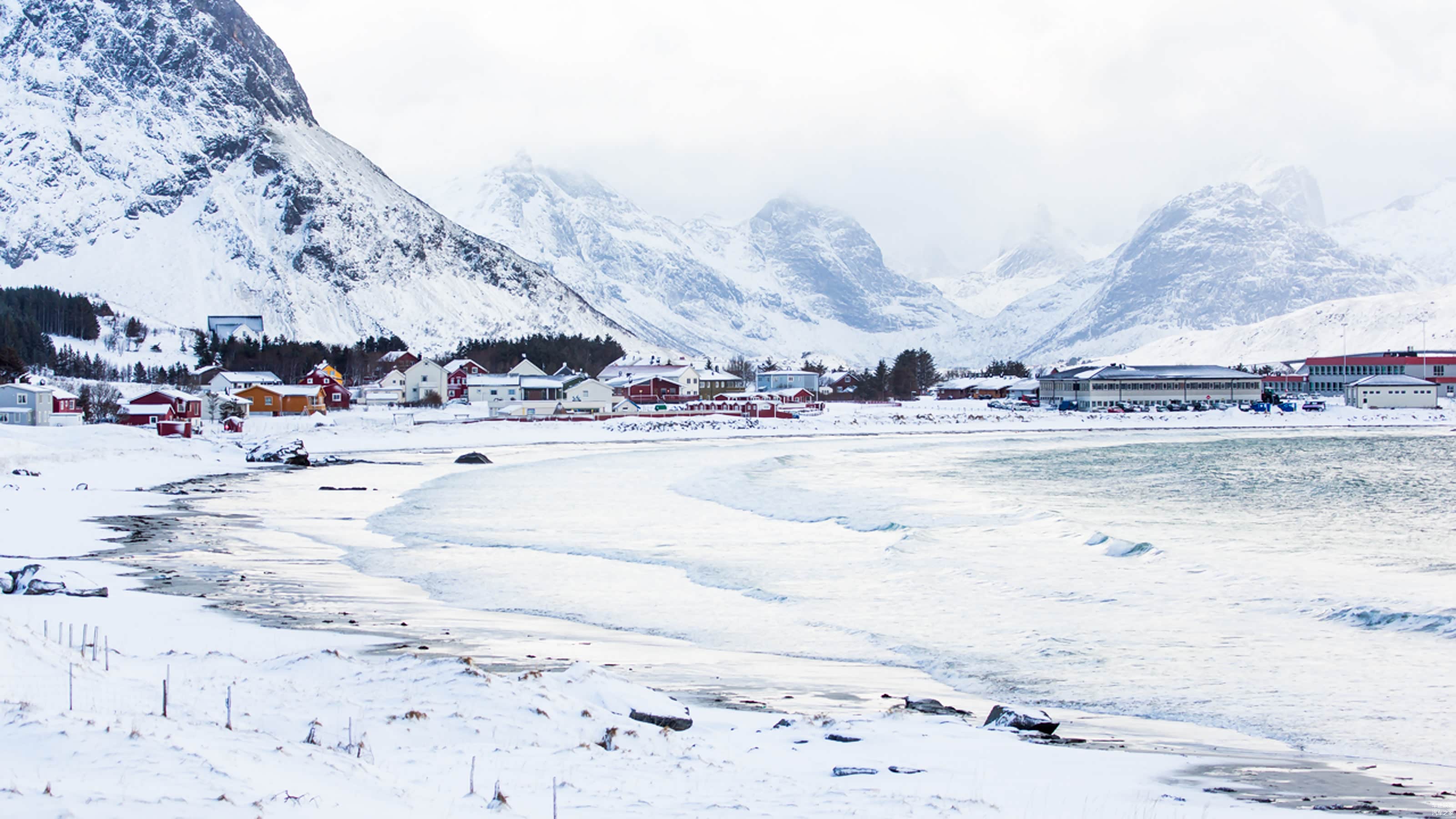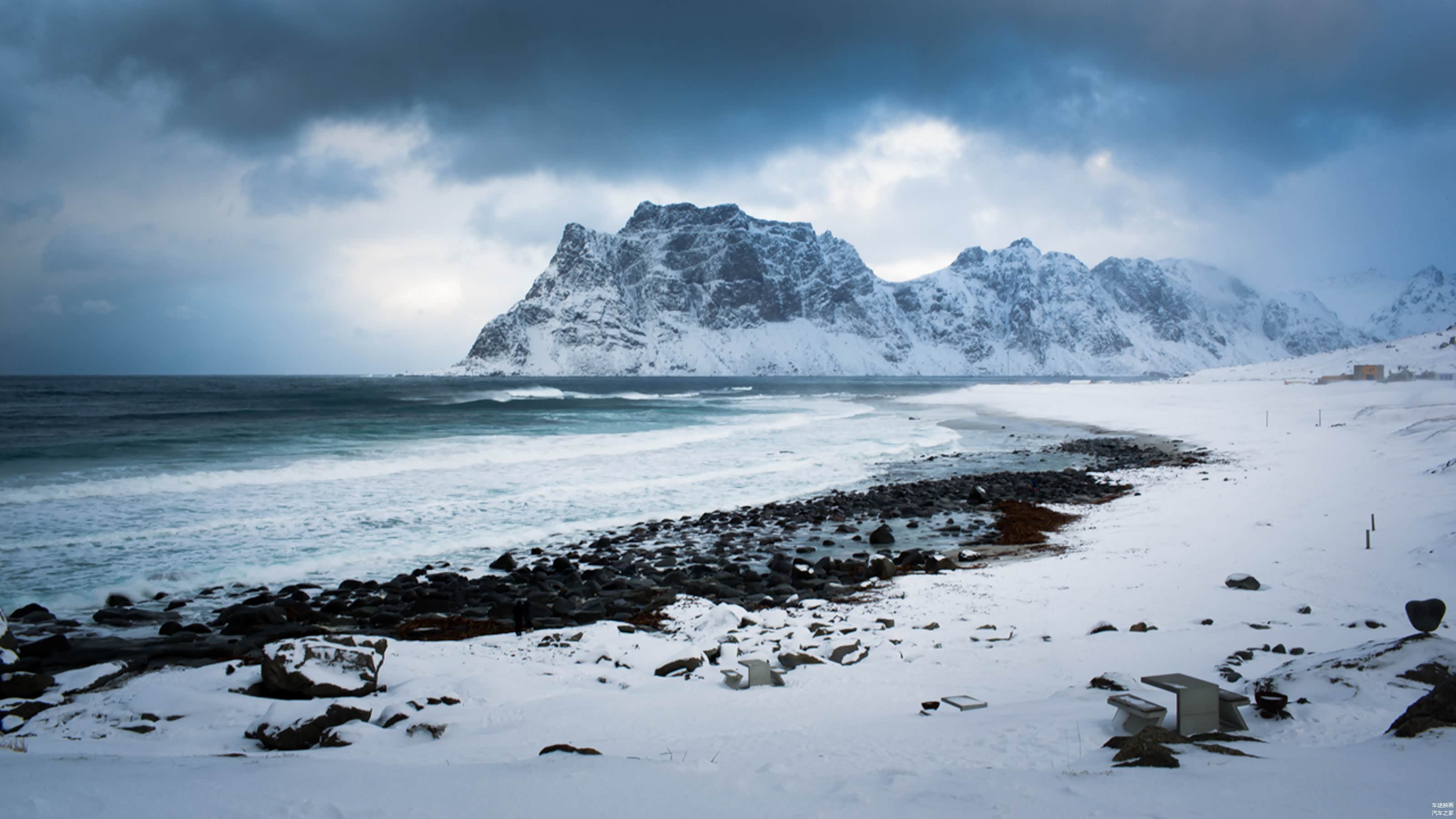 自古罗佛敦群岛一条路,我们沿着E10公路往回开,之后北上。而周围的岔路上,Flakstad和Uttakleiv两处海滩,隐藏在峡湾的深处。汹涌的波涛拍打着海岸的巨石,波澜壮阔,完美的诠释了北极圈内狂野的冬季。但对于多次跑过东北冰雪试驾的我,感觉这一切并没有想象中的那么冷。