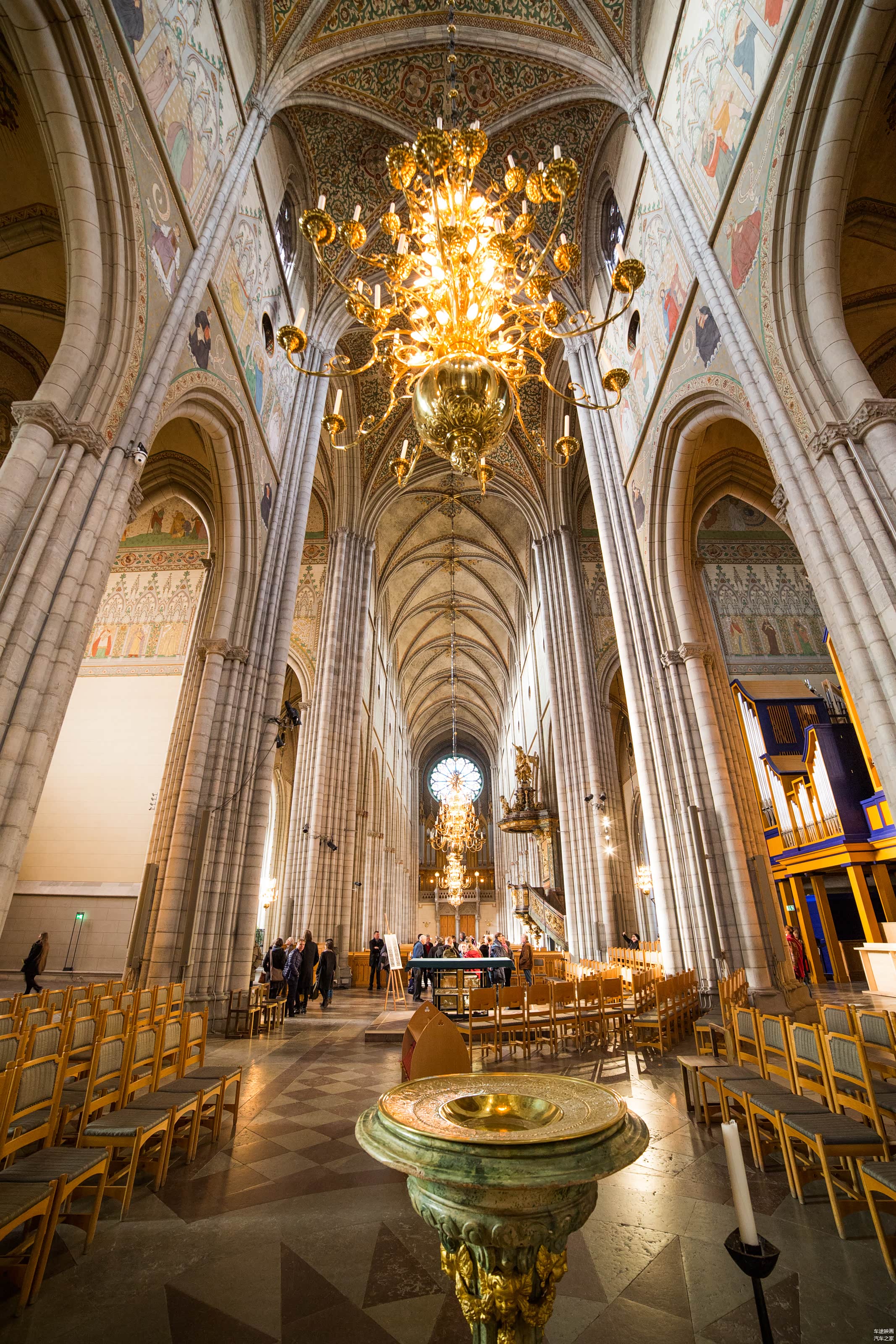 一座建于13世纪的教堂高耸入云,119米的高度成为了整个北欧最大最宏伟的教堂,成为了整个小城的视觉中心。这座罗马天主教教堂,曾经用于瑞典国王的加冕与安葬。教堂内部同样精美华丽,有着一种更为庄重的仪式感。
