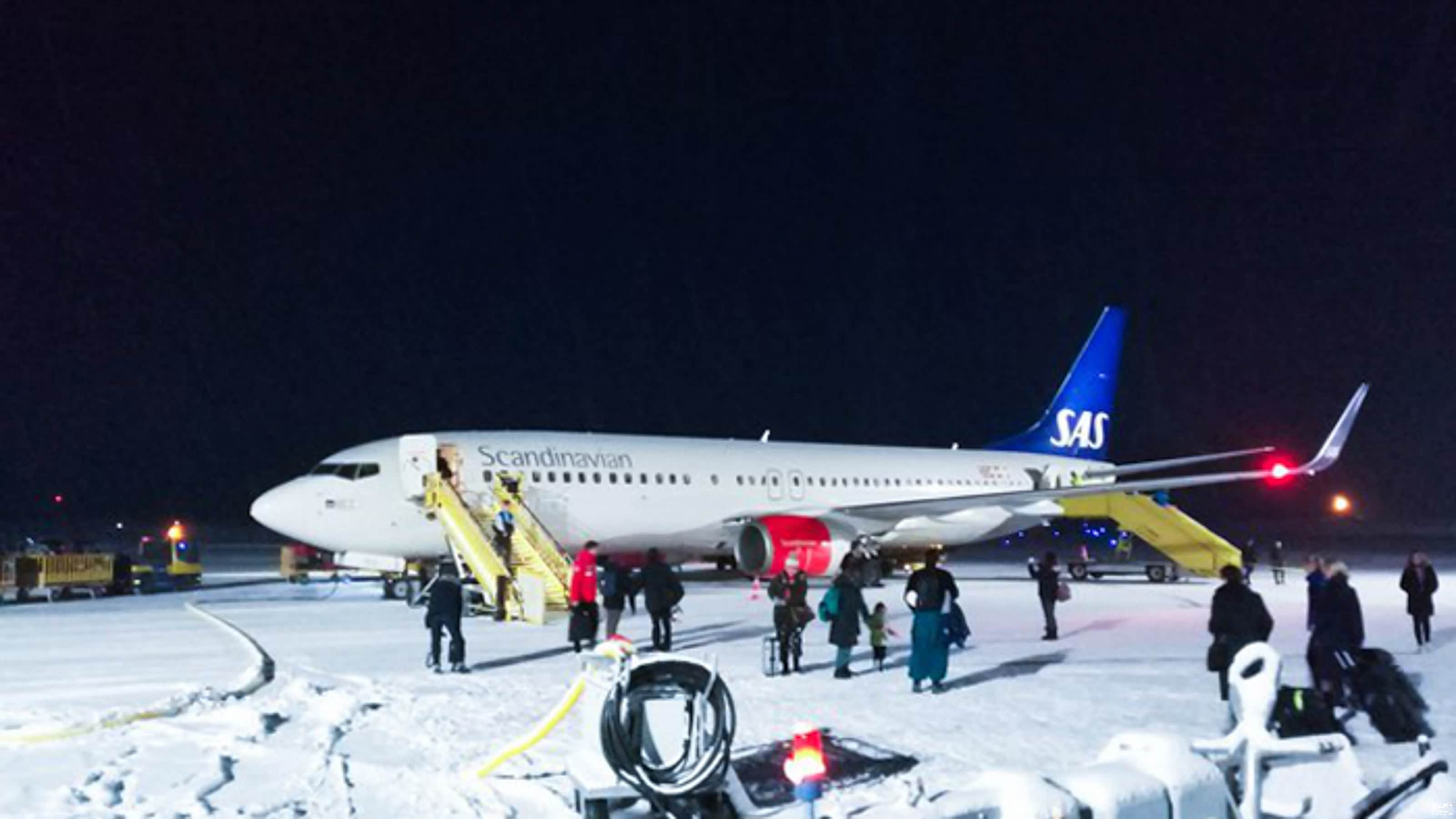 飞机的驾驶好像战斗的民族,SAS北欧航空的飞机,在基律纳一片雪地中嘭的一下扬起一片雪雾。艺高人胆大,但没有俄航般的鲁莽(俄航其实我没坐过)。下午5点,晴朗的黑夜,给了我一个不错的信号,就是晚上应该会有极光的出现。