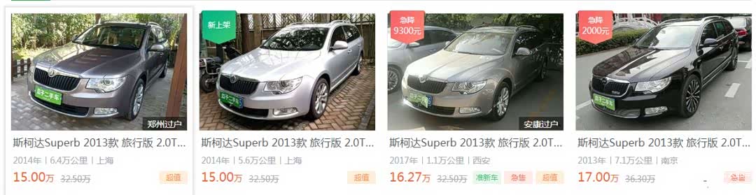 我们如果喜欢旅行车的话,可以买这几款,最亲民的是宝骏310W、大众蔚领、斯柯达明锐旅行版。当然可以买二手斯柯达Superb速尊,如下图: