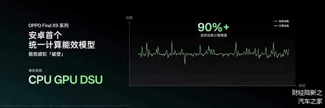 为了解决这些问题,此前 OPPO 带来了安卓首个精准算力单元集功耗模型,实现对 CPU、GPU 等 SoC 子系统功耗信息的体系化。全新一代 OPPO 潮汐引擎进一步将其升级为安卓首个自主研发的 “统一计算能效模型”,首次实现了对 CPU、GPU、DSU 计算子系统的建模,更全面地覆盖处理器核心计算单元的功耗表现,在各用户场景中实现了 90% 以上的功耗计算精度。通过对计算子系统功耗更完整和精准的建模,减少无效的数据访问与供给,使天玑 9500 的强劲算力实现前所未有的高效利用,让芯片能效的认知从推算走向计算。