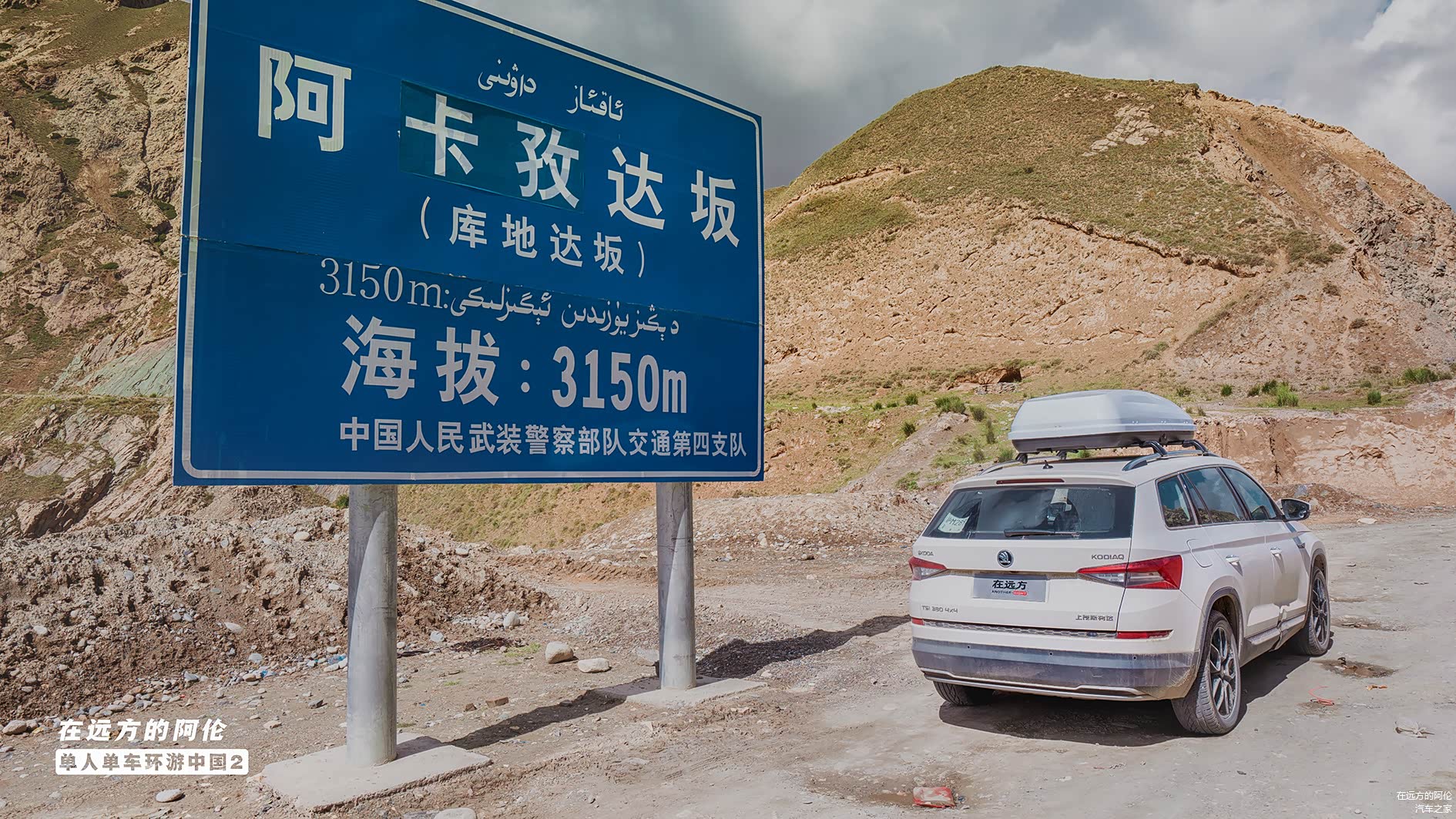 目前的这两根横杆是出发前买车顶箱送的,它让我在川藏北线忍着高反吃尽了苦头(川藏北线章节有描述过,在这里就不再赘述了),新藏线因为路况不错,所以我干脆就放任不管了,但接下来还有很多路要走,所以此横杆是必须要换掉的。(可以看到车顶箱已经往前滑动到横杆卡位的极限位置了)