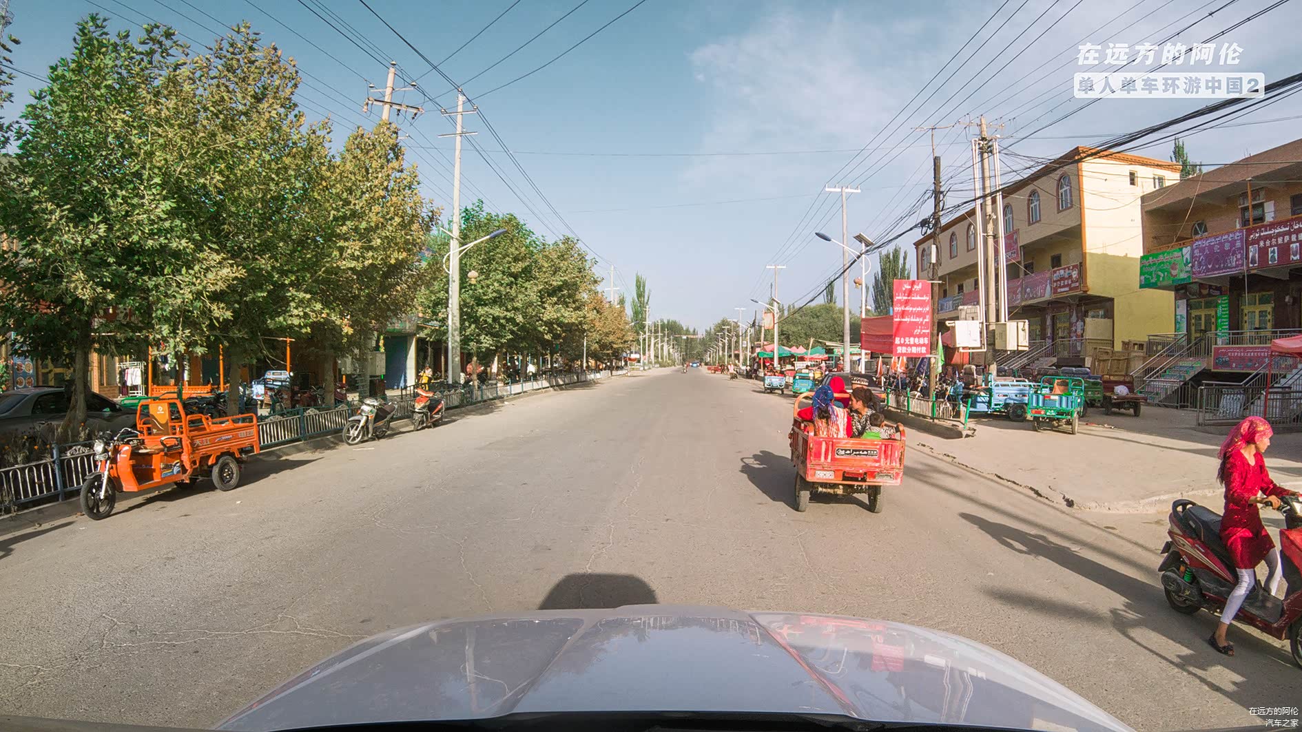 我坐在车里好奇的打量着窗外的一切,看看绿油油的新疆杨,哦.....寡人似乎已经很久没见到树了😂;再看看房子,藏居红白色的外墙早已销声匿迹,换做了像汉人一样的农家小院儿;再看看妹纸.....呃....暂时还没见到妹纸,几乎都是高鼻梁,大眼睛,裹着红色头巾体型壮硕的维族大妈........我觉得这里跟西藏完完全全的不一样嘛,特别是村口偶尔遇见的,带着白色花帽,坐在驴车上的白胡子老大爷,我勒个去!你不知道,我当时一度以为我是穿越了,迷了路,为啥?