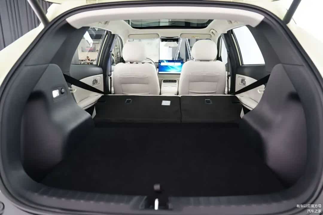 后备厢也是全新启源Q05的一大亮点所在,常规状态下容积为540L,下方90L的下沉式储物箱(含在540L空间内)设计虽然不是第一次出现,但依旧能带来不错的实用性。而把后排座椅放倒后,又可形成一个1380L的全平空间,小车的装载能力可千万别小瞧了。
