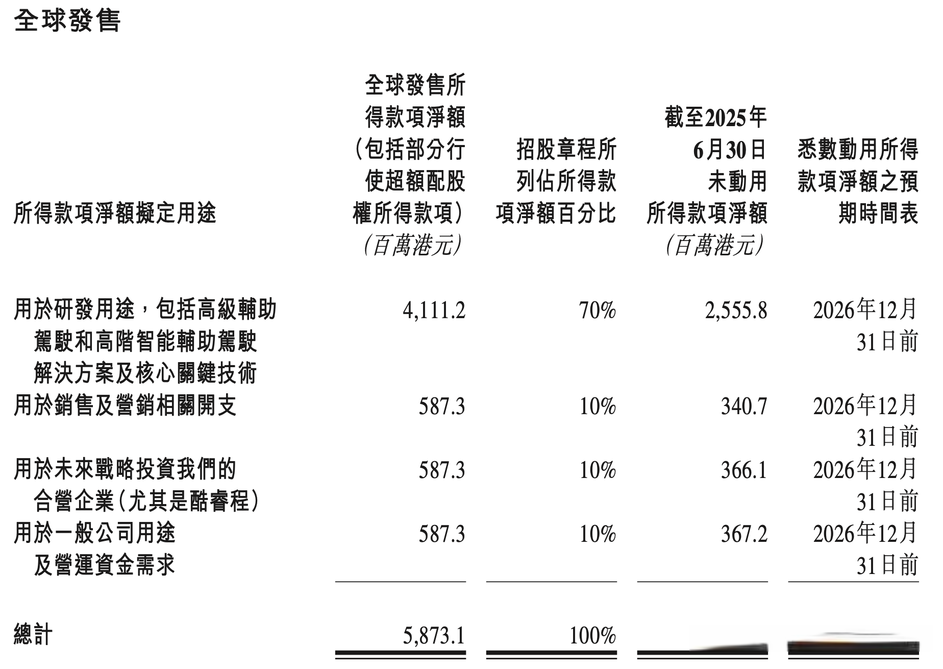 此外,本次发布的公告还透露了地平线首次公开发行(IPO)所获资金的用途具体分配情况。