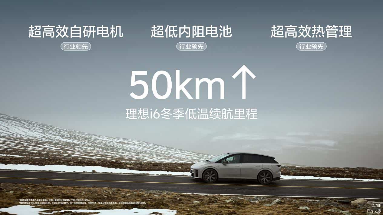 理想i6全系标配87.3度全新5C磷酸铁锂电池,CLTC续航里程最高可达720公里,具备超级续航、超级充电、超级放电、超级耐久、超级安全五大亮点。理想i6搭载理想汽车自研的碳化硅电驱系统,系统采用汽车行业首个正六边形元胞结构的自研碳化硅芯片,电机综合效率达到行业领先的93.08%,提升超30公里续航,百公里网端能耗低至13.6千瓦时。凭借超高效自研电机、超低内阻电池和超高效热管理,理想i6低温续航提升50公里以上,-7℃低温工况下续航达成率高达70%,在高速、城市及低温等多种场景下均能表现出同级领先的续航水平。