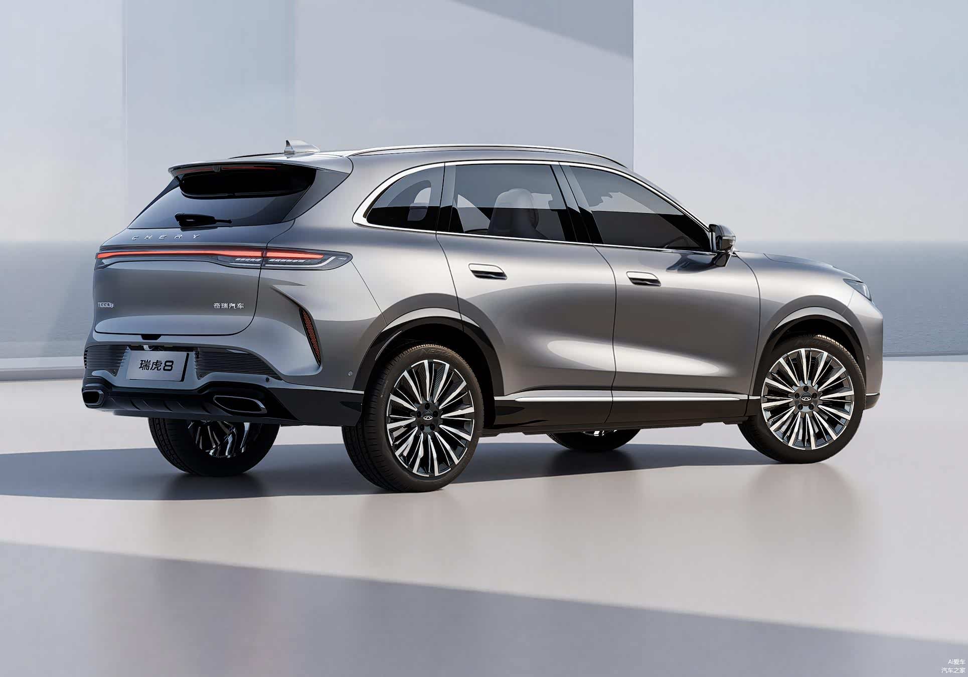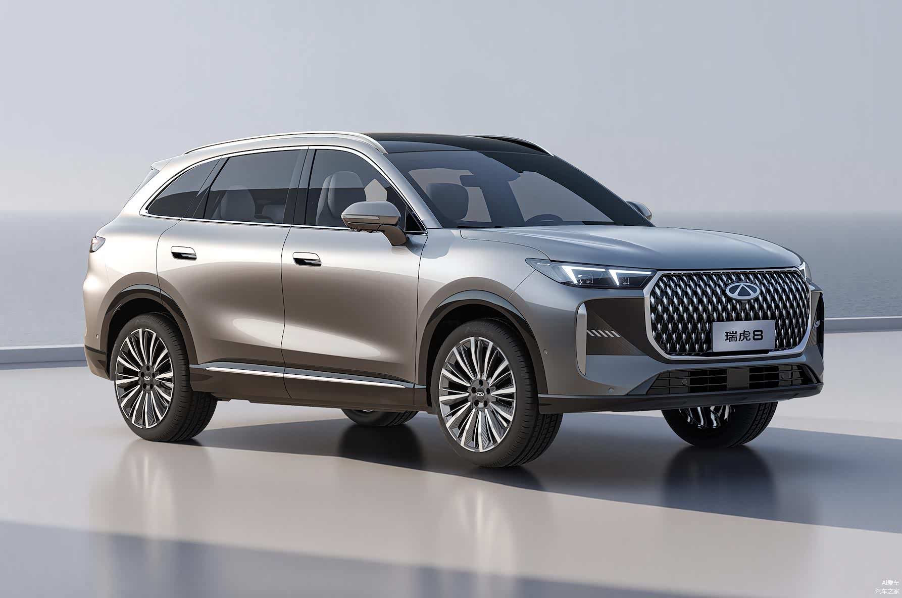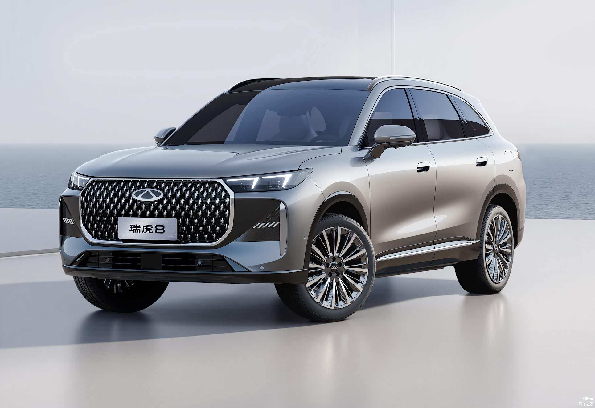 先说外观,双前脸设计确实是个聪明做法。一个延续瑞虎8 PLUS的分体式大灯,走温和家用路线。另一个换成一体式灯组配多边形中网,镀铬点阵填充看着精致一些。两种风格覆盖不同审美需求,总有一款能让你满意。