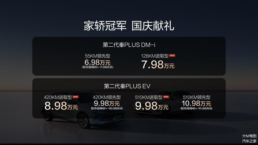 9月25日第二代 秦PLUS(图片 | 参数 | 询价)家族三款全新车型正式上市!更狠的是限时6.98万起,诚意可谓相当足。