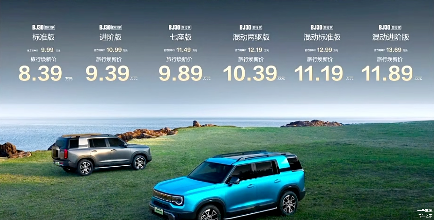 在2025年9月27日的夜晚,北京越野公司在北京正式公布了其BJ30旅行家的上市消息。这款新车共推出了六种不同的车型,其售价范围是9.99万元至13.69万元,而旅行焕的新售价则在8.39万元至11.89万元之间。