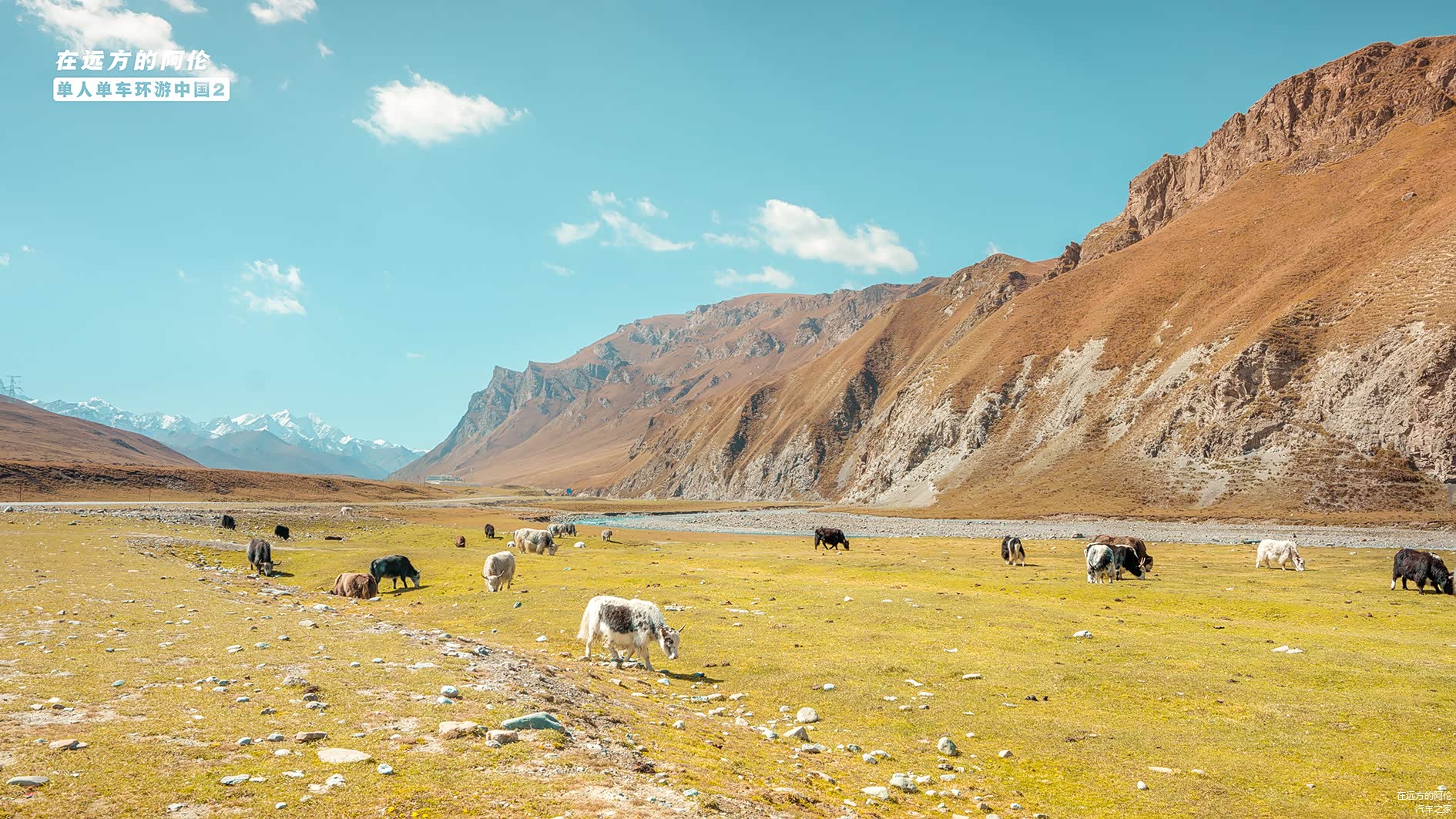 我把大白胖停在了路边,下车走了过去,看到在这段平坦的峡谷里,终于出现了牦牛和牧民的身影,这突然让我有点回到西藏的感觉。