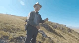 在离开观景台返回停车场的路上,我碰见个带着小圆帽,衣着讲究的老爷子。