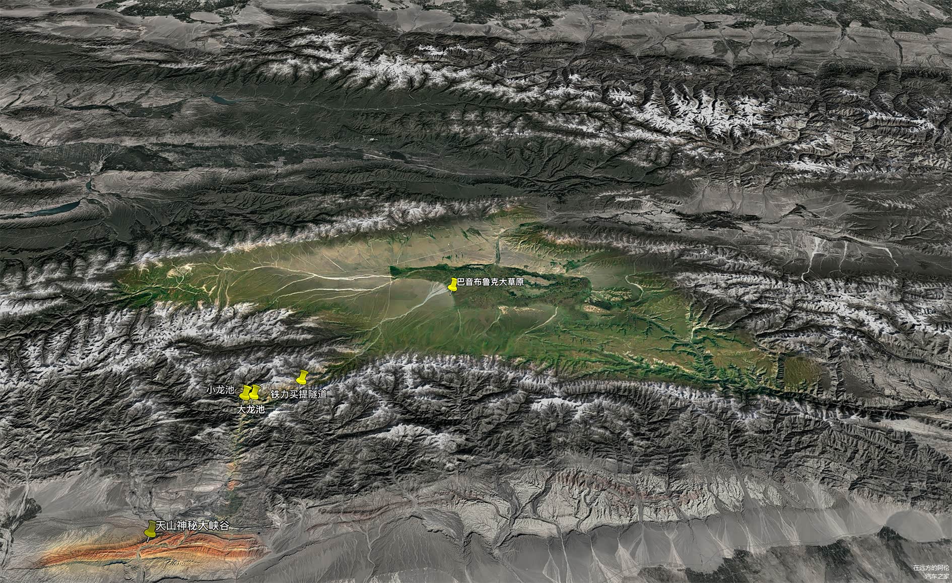 这片世外桃源,既被天山腹地里的雪山包围了千万年,也被雪山融水滋养了千万年;这既是一处大盆地,也是一片平坦的大牧场。
