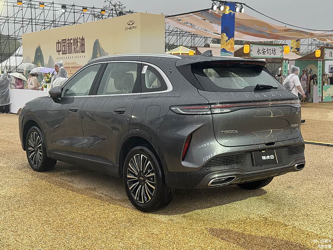 车身侧面是标准的SUV式设计,当下流行的半隐藏式门把手没有缺席,车尾造型饱满,并换装全新样式的贯穿式尾灯,“CHERY”标识位于尾灯上方,有着不错的时尚感。在细节之处,两款车有所不同,一款采用隐藏式排气设计,另一款采用双边共两出式排气装饰。车身尺寸方面,新车长宽高分别为4749mm、1880mm、1710mm,轴距2825mm;不仅相比现款车型有明显提升,其轴距甚至超过了瑞虎9的2820mm。