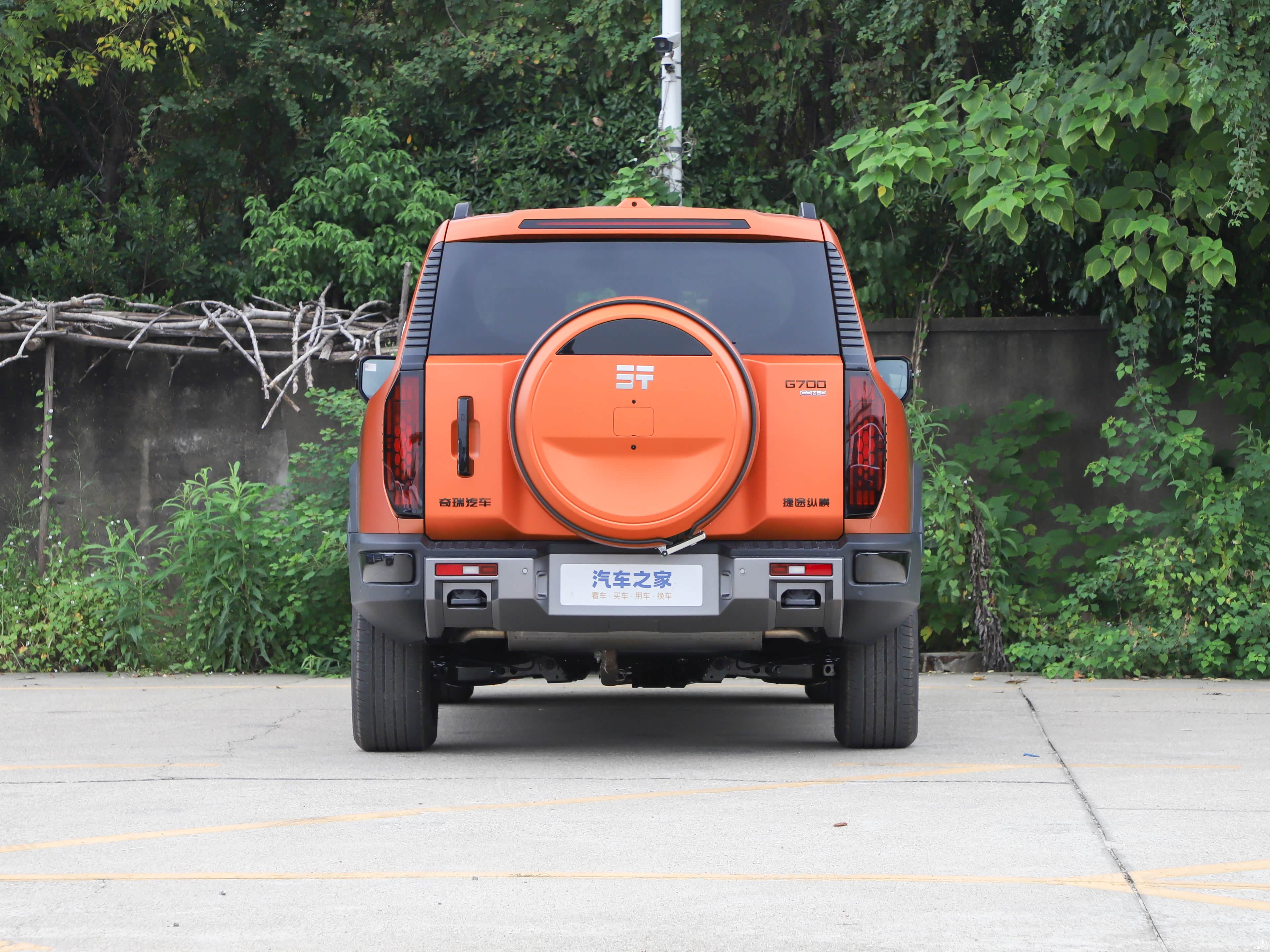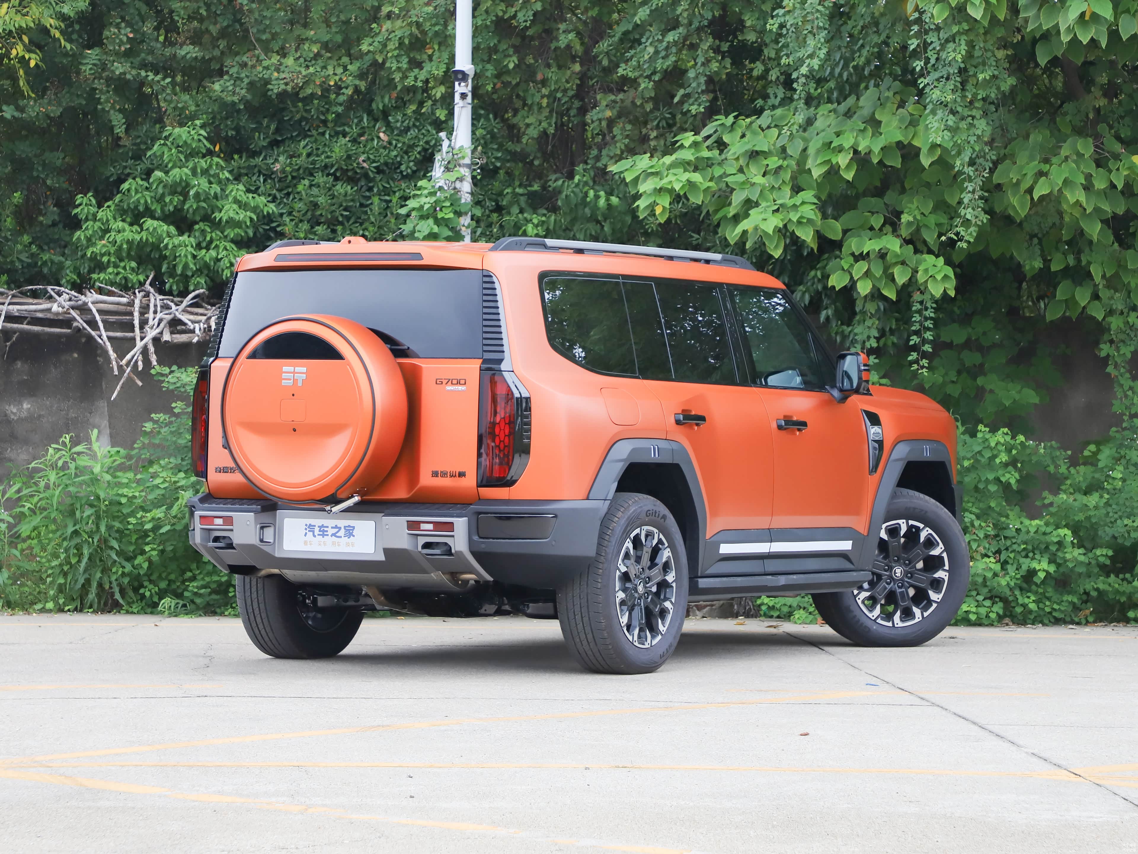 在车辆的尾部设计上,车顶装配了一款贯穿式的高位刹车灯,而备胎则采用了全尺寸的外挂式设计,这也是硬派SUV中普遍采用的设计风格;尾灯组的熏黑设计采纳了垂直的布局方式,其内部构造展现出强烈的立体效果,而尾门的设计也是侧向开放的;下方的包围区域装有与前保险杠相匹配的黑色装饰板,并且还配备了拖车钩,整体风格显得非常粗犷。