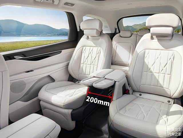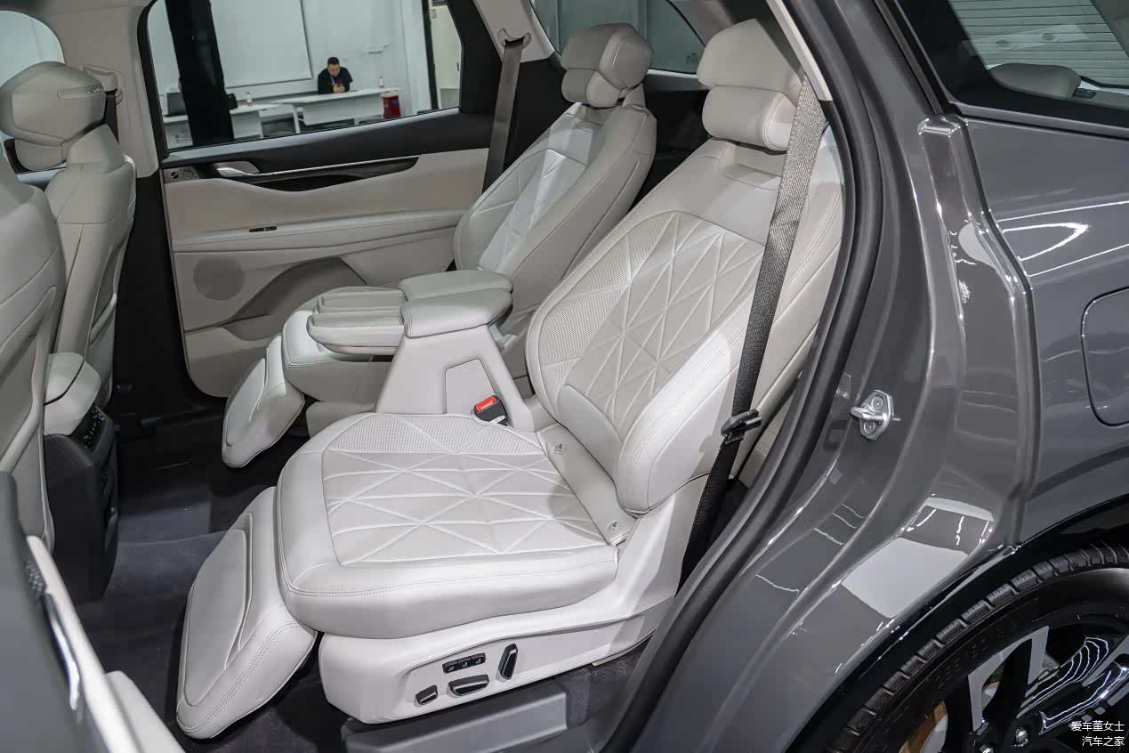 锐界L采用了2-2-3类似于MPV的布局模式。中间两个独立座椅加热、通风、零重力模式全都支持,还配备两个无线充电面板,中间过道宽度达到200毫米,简直就是头等舱般的享受。这种座椅布局存在的意义,不仅仅是二排的舒适性,还在于第三排乘客可以更加舒适地进出。说得更直白点,2-3-2布局第三排利用率极低,谁都不想坐后排小板凳。而2-2-3布局,在提高二排舒适度的同时,坐进第三排座椅,也不会感觉很压抑。