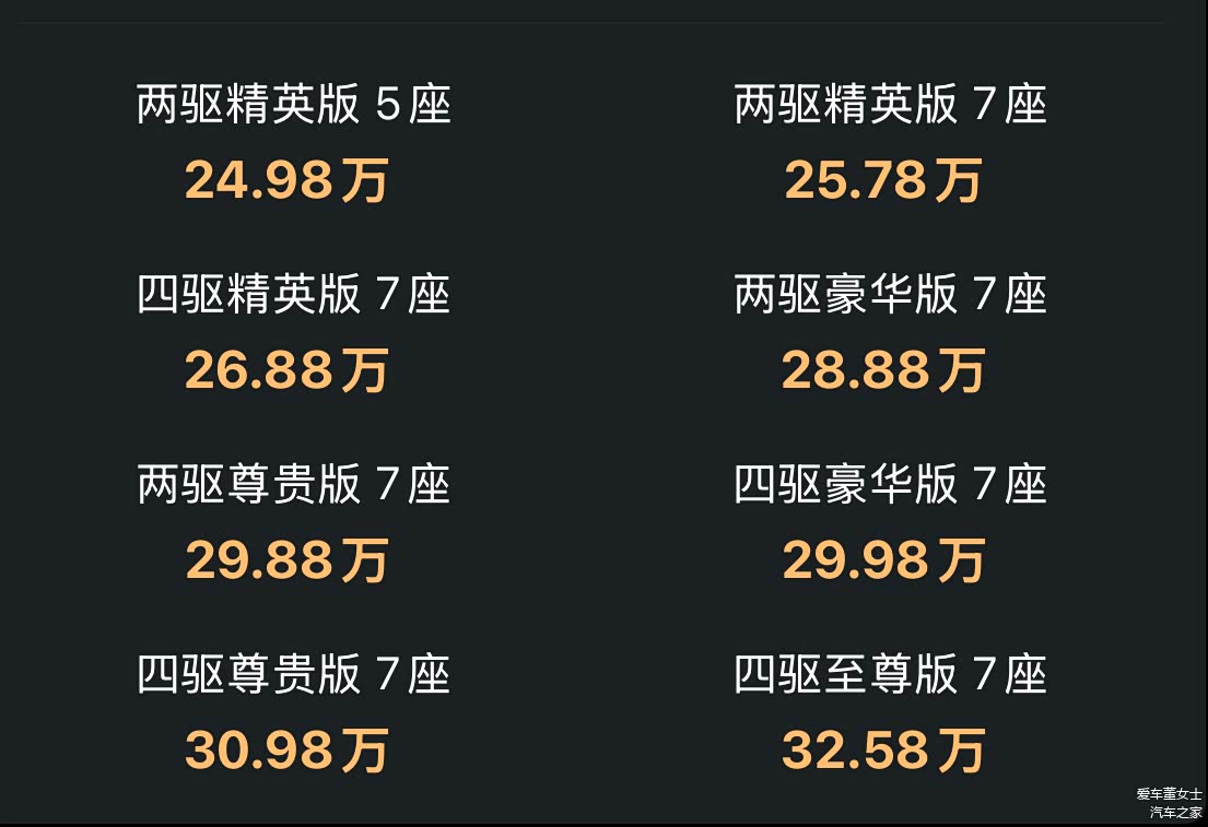 2026款汉兰达售价24.98万至32.58万,并且全系车型都换装了15.6英寸的中控屏幕,内置高通骁龙8155P车机芯片。手机无线充电,以及前排隔音玻璃和后排隐私玻璃也成了全系标配,低配车型织物座椅换成了仿皮座椅,终于不过分寒酸了。可以看出2026款汉兰达加量不加价,更有吸引力了。