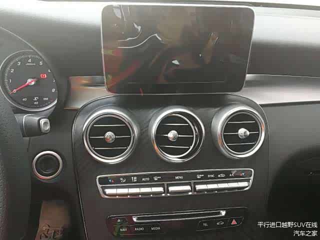 奔驰GLC300中控台8.4寸中控屏采用悬浮式设计,搭载了奔驰COMAND Online系统。可以通过中控台后方的旋钮,按键,触摸方式控制稍微适应下即可上手。中控台下方为空调出风口,空调控制区域及CD舱,三圆环出风口采用磨砂银色材质,按钮采用滚花处理,整体看起来非常精致高档。