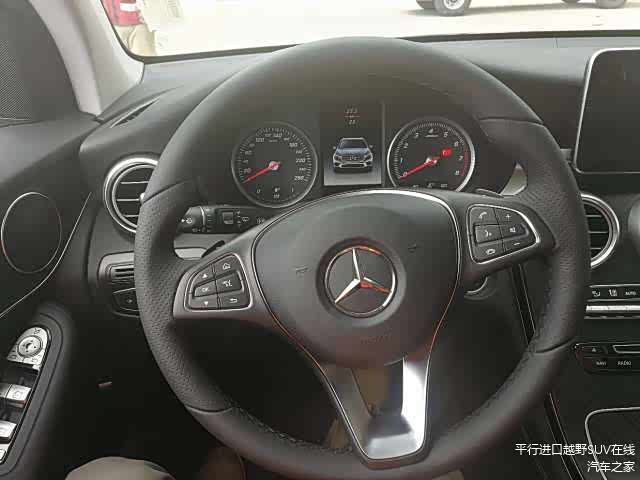2018款奔驰GLC300采用三幅式多功能方向盘运动真皮包裹,手感出色。方向盘可控制多媒体,唤醒语音控制,行车电脑,电话等功能。方向盘后面还配有换挡拨片及定速巡航控制。方向盘左侧为灯光控制区域,以及车道保持,泊车雷达,360度全景摄像功能的控制键,并且还可以控制液晶屏的亮度,