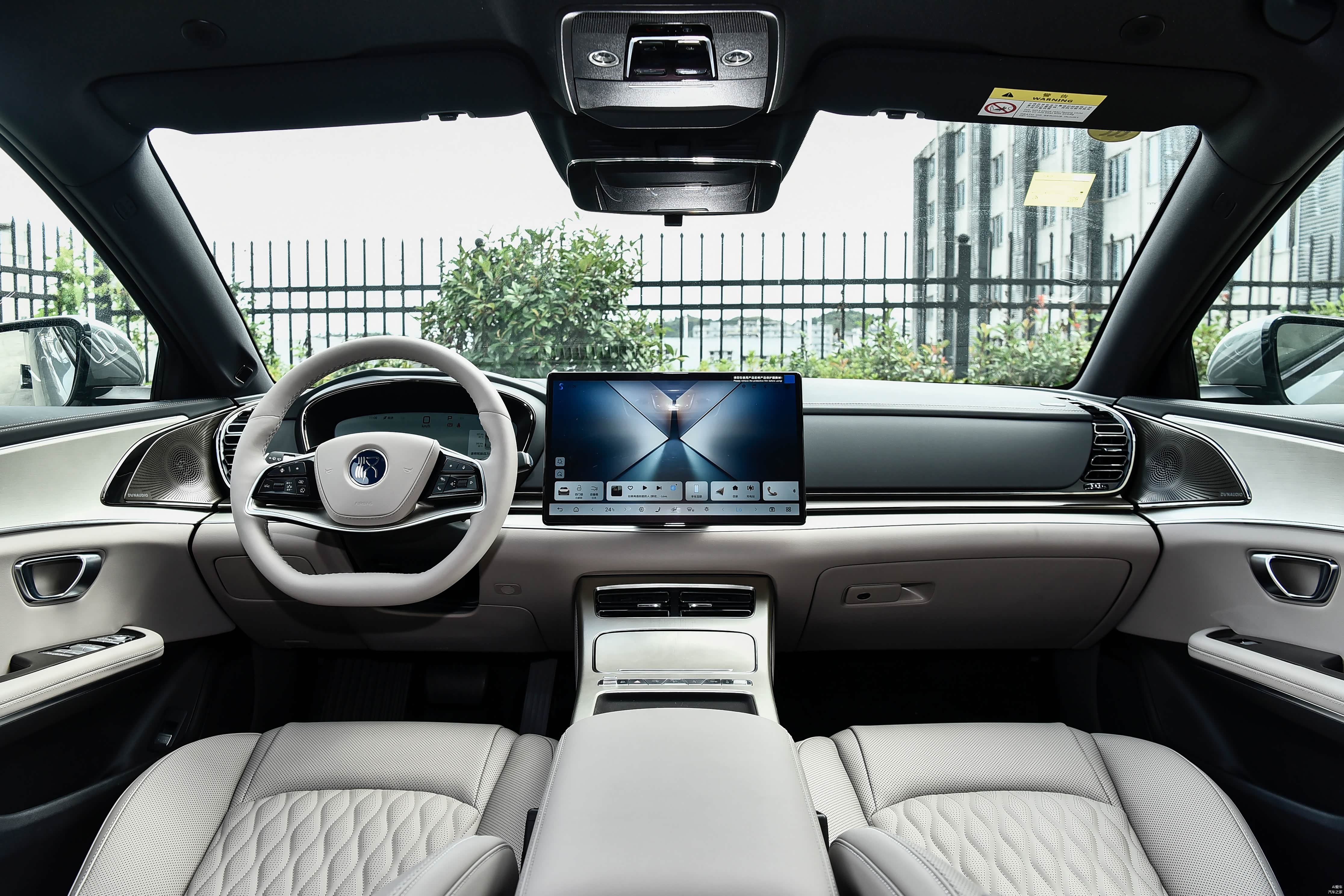 内饰改动不大,但细节有亮点。新增雾凇金配色,看着更高级。最大变化是换装怀挡式换挡机构,中控台下方空出来了,储物空间更大。还增加了车载冰箱,夏天放饮料冬天放零食,实用性提升明显。整体布局跟现款一样,熟悉的DiLink系统和悬浮式中控屏。