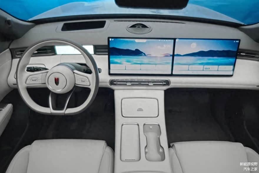 先简单介绍新车的内饰,白色内饰配色,显得更加的年轻。中控台采用内嵌式全液晶仪表盘,搭配中控屏+副驾驶触控屏组成悬浮式一体式屏幕的设计布局。配置方面,搭载红旗全新车机系统,支持540°全景影像系统、地图导航、多媒体应用、OTA升级等。