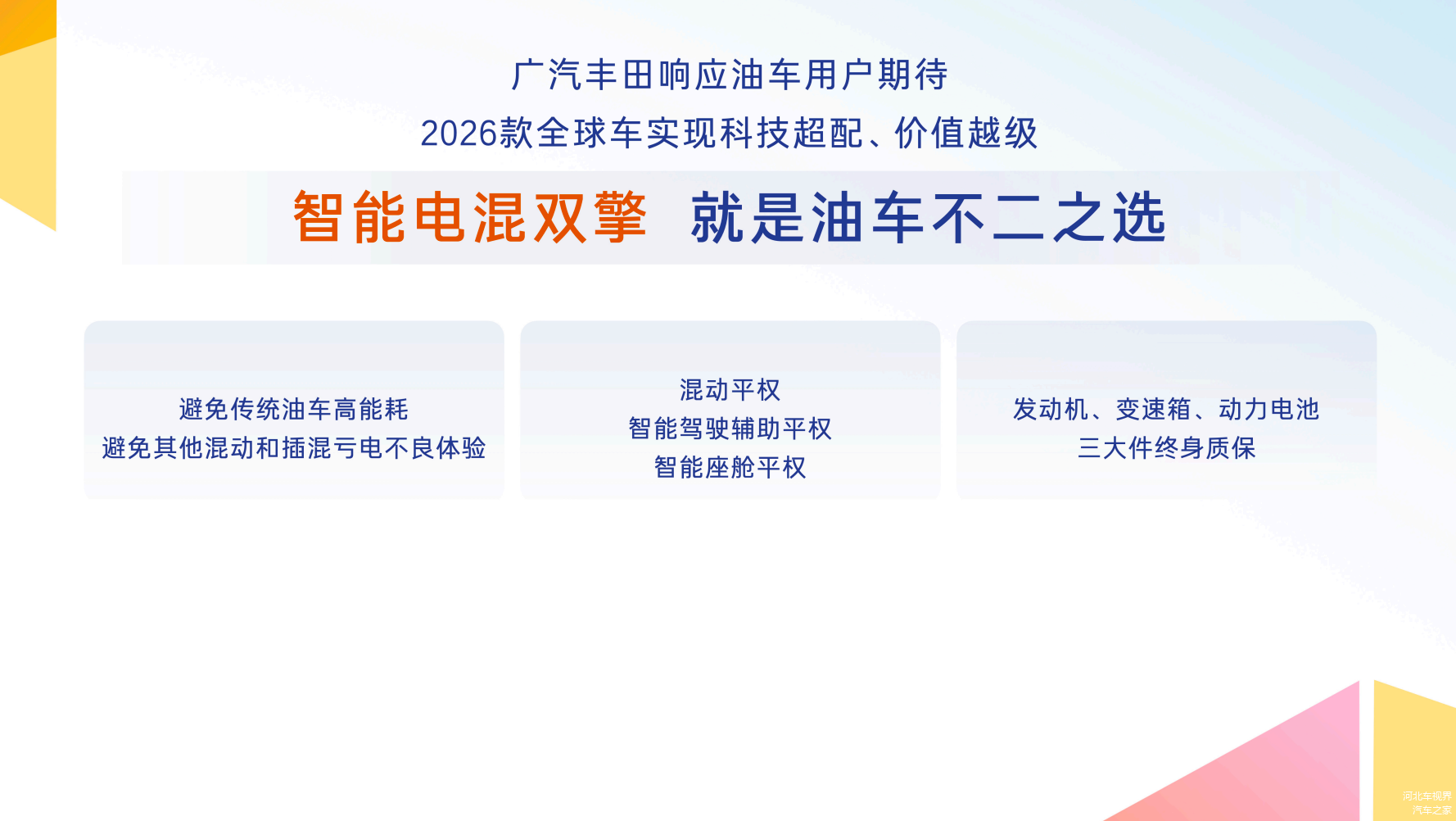 这背后,我们看到的是广汽丰田在“聚变2030”战略下,对“油电同强”理念的一次集中落地。面对新能源市占率持续提升的市场环境,广汽丰田明确传递出一个信号:不仅有能力造好电车,更有意愿、有技术为仍占半壁江山的油车用户造一台更好的车。这次,广汽丰田以“挤爆牙膏”的方式焕新2026款丰田全球车,可能是今年“最不车企”的发布会,却可能是最懂用户需求的一场。