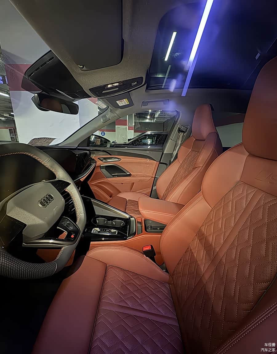 在外观设计上,这款新车采纳了奥迪最新的家族式设计理念。前面的标志性八边形进气格栅已经升级为蜂窝状的立体结构,内部装有可发光的品牌徽标和贯穿式LED灯带,形成了极具辨识度的视觉焦点。两侧的全新矩阵式大灯组融合了双边激光雷达技术,并与前包围的梯形导流槽相结合,这不仅增强了其科技特性,还为前脸注入了更强烈的攻击性。在车身的侧面设计中,“黑武士”采用了独特的哑光涂装以突出其力量感,搭配熏黑多辐式轮毂和红色刹车卡钳,共同营造出一种即将爆发的运动氛围。在车辆的尾部设计中,贯穿式OLED尾灯组提供了动态的点亮功能,而高配版本则在扰流板的下方增加了地面投影功能,这与前面的科技设计完美结合。