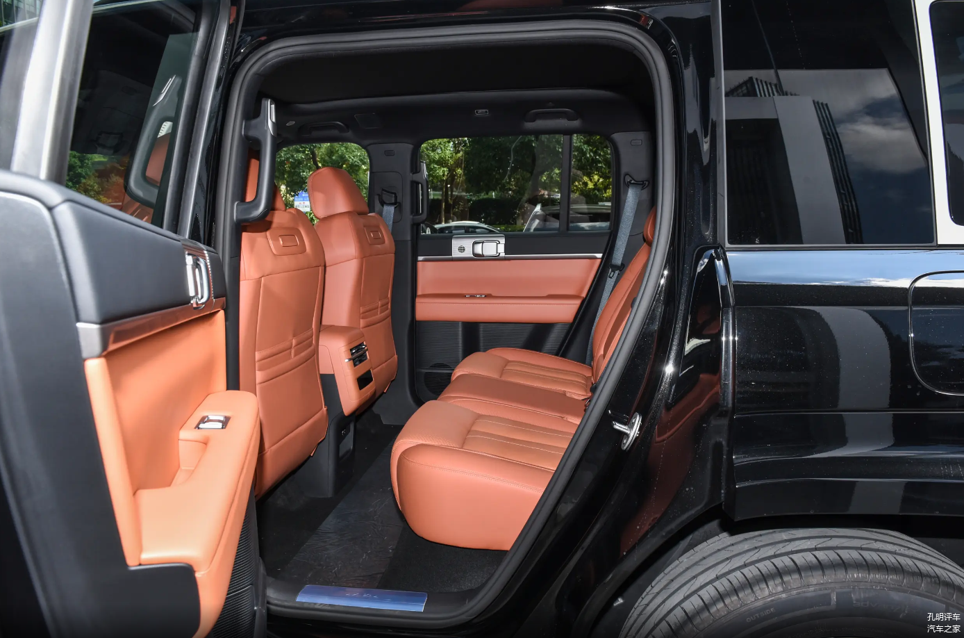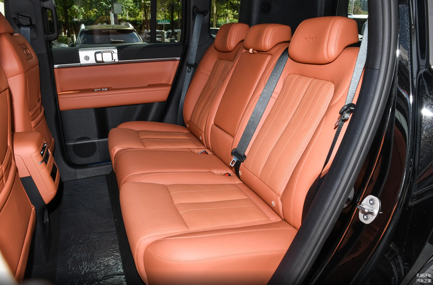 尺寸参数确实是很讨喜的,车身长度4999mm,宽度1995mm,特别是轴距2920mm,在这种情况下主打了大5座的空间布局,虽然上升到这个级别尺寸也能勉强塞进去三排座椅去迎合二胎家庭,但是方程豹品牌显然没有去追求座椅的数量,因为后续还有更高一级的产品去迎合6座以及7座布局。
