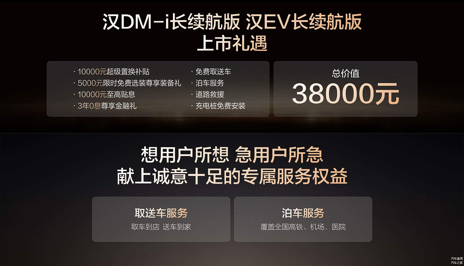 另外,服务方面的提升比亚迪近年来也是动作不断,比如汉车主免费尊享取送车服务、免费尊享泊车服务,而且免费泊车服务已经覆盖高铁站/机场/医院三大场景。