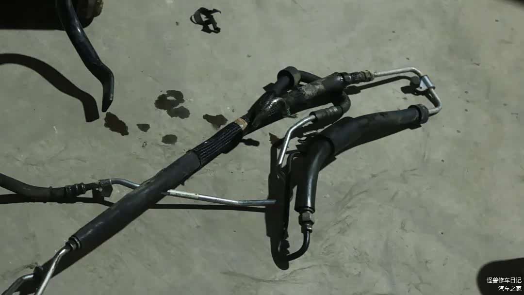 更换转向机助力油管,A8转向机助力油管公里数大了,我发现都会漏油,切记:一定要更换原厂油管!因为副厂管的内径不同,会影响助力油流速,转向机能给你干废了。