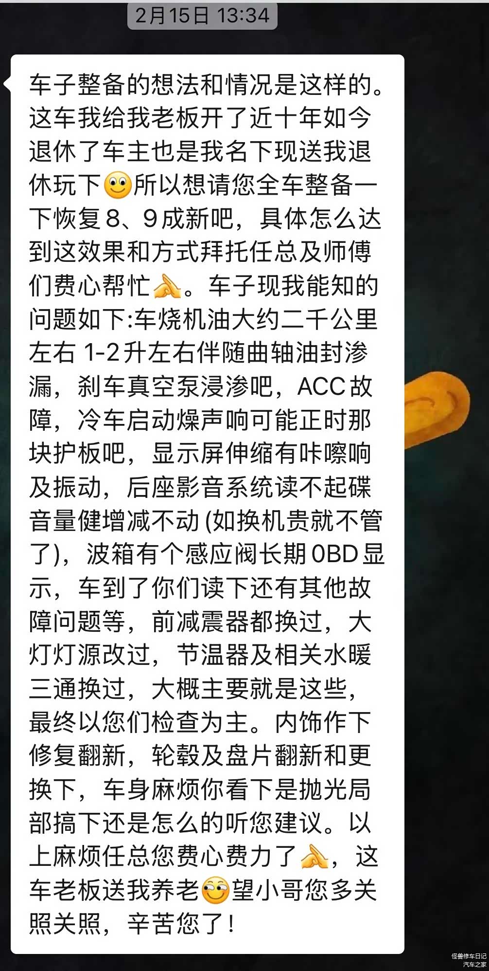 大修后,机油消耗恢复正常了,车主也是为咱竖起了大拇指!
