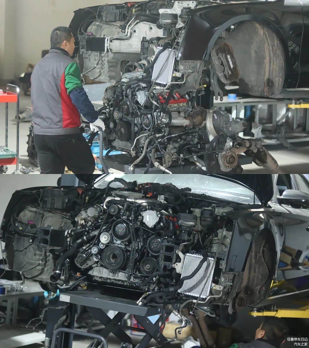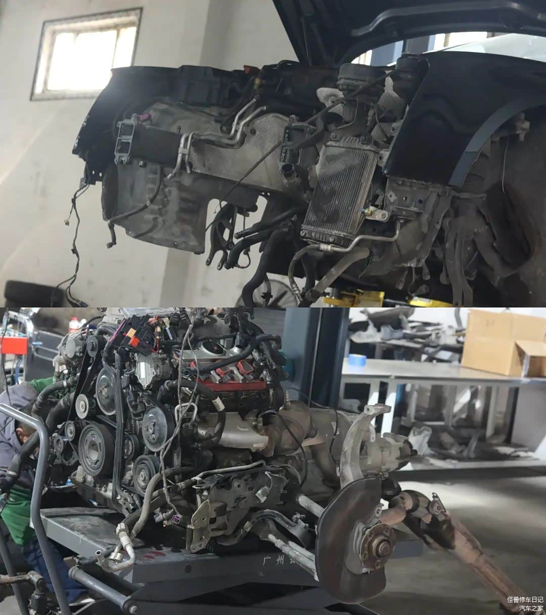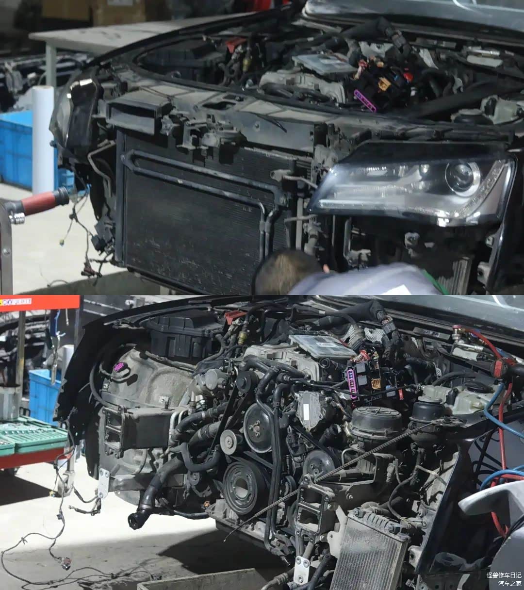 开拆,前脸散热系统等拆除。