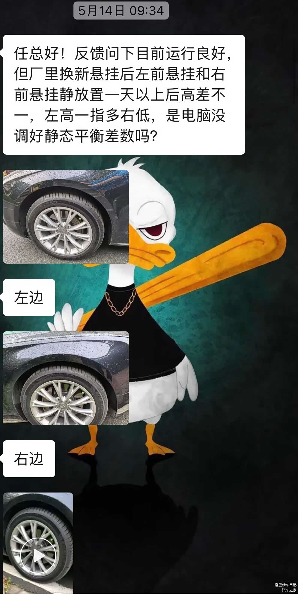 到了一段时间后,整体都满意,但是车主反馈有一个问题,悬挂有高度差?
