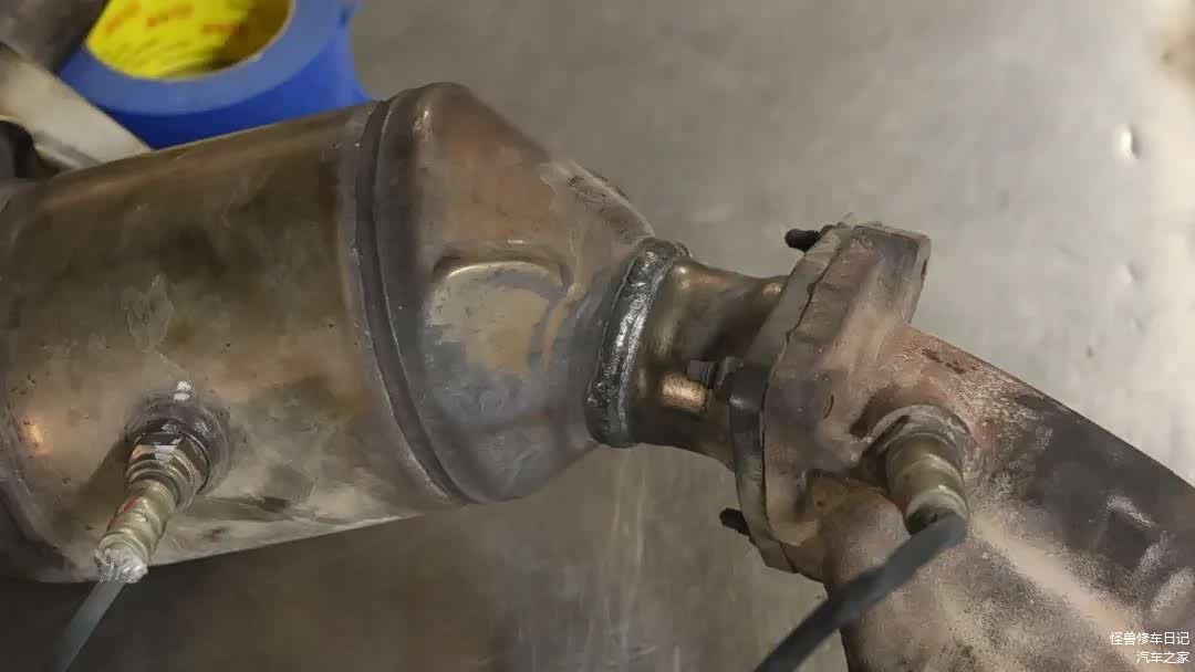 开焊的三元催化,咱们重新焊接一下,后面还得验车呢,这块先处理好。