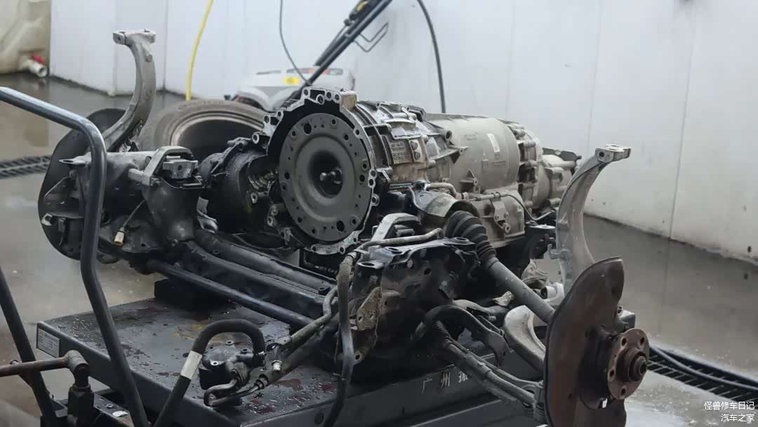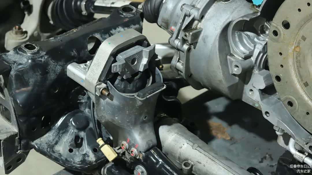 变速箱和元宝梁上面,都是发动机漏的油污。