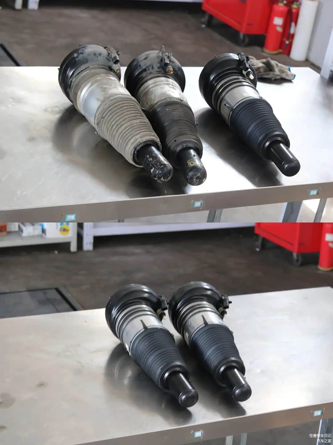 这次路试检查发现空气悬挂也有问题,车主说来之前也发现车身左右不平了!更换两根。