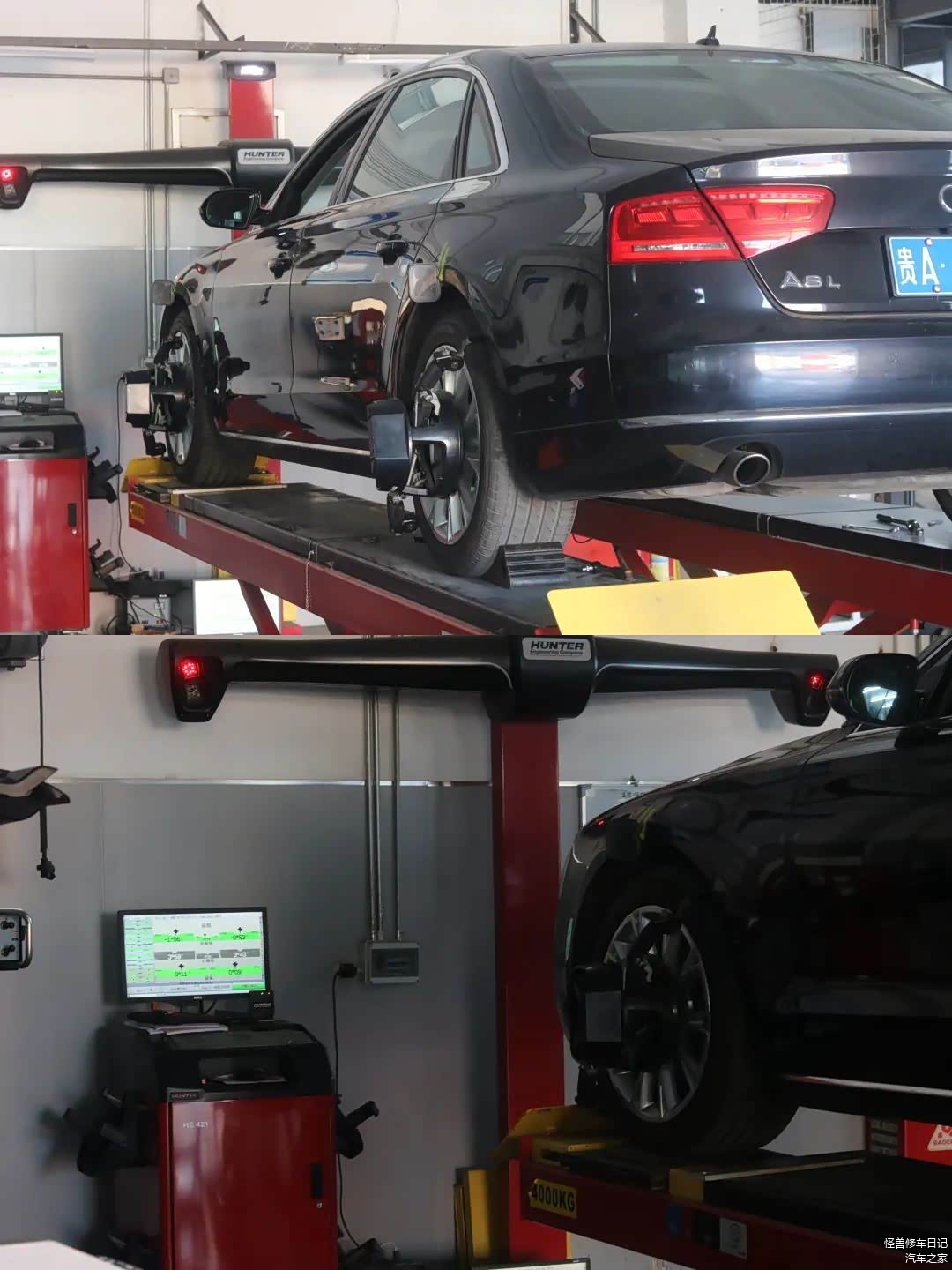 车子上架,开始检查了。