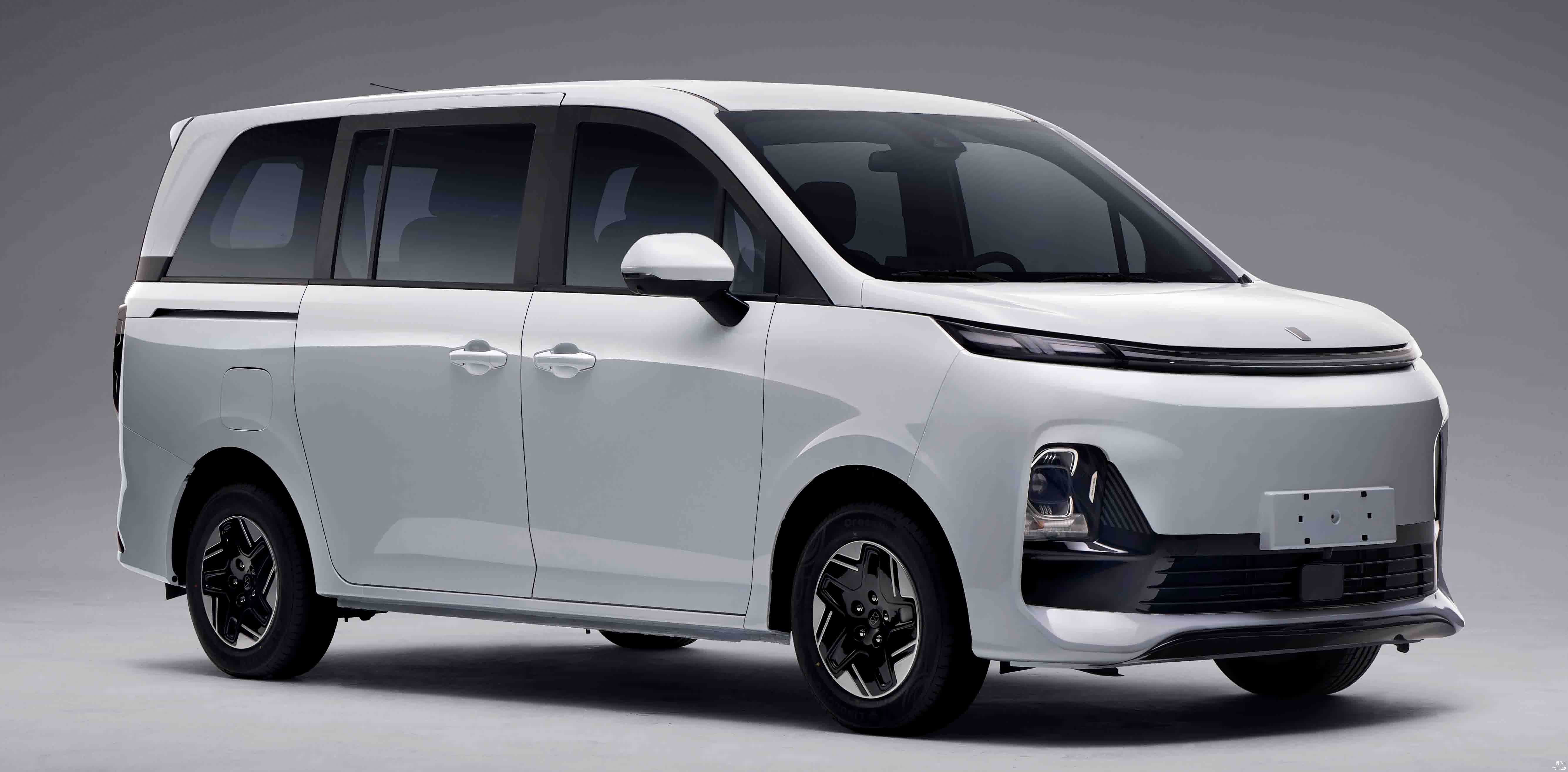 具体来看,前脸部分方正的车鼻有着大面积封死的造型,贯穿式的灯带连接了两侧两点式的日行灯组,而前保险杠部分则是梯形下格栅,引出了黑色区域镶嵌有精致镀铬装饰包裹的远近光灯,形成分体式大灯布局,是时下乘用车市场各家都在采用的最流行前沿的设计语言。车身侧面和车尾部分则是传统的商用车设计,也不会和五菱X光之类的对手有任何明显的区别,标准的侧滑门提升了实用性,悬浮式车顶增强了时尚感,轮毂尺寸不大,但双色布局也算是相当用心。