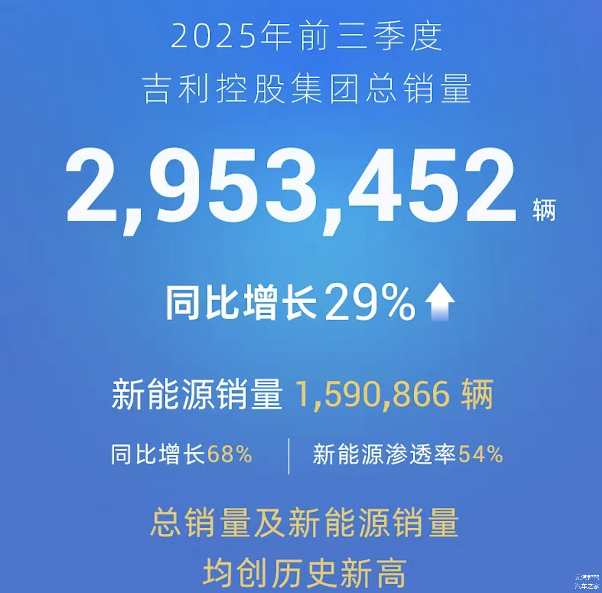 吉利2025年第三季度销量首次冲破百万大关,达102.09万辆,前三季度总销量达295.34万辆。这份成绩绝非偶然。以这一核心数据为锚点回溯,能清晰看到其背后“产品精准破局、技术扎实落地、结构均衡发力”的完整逻辑链。