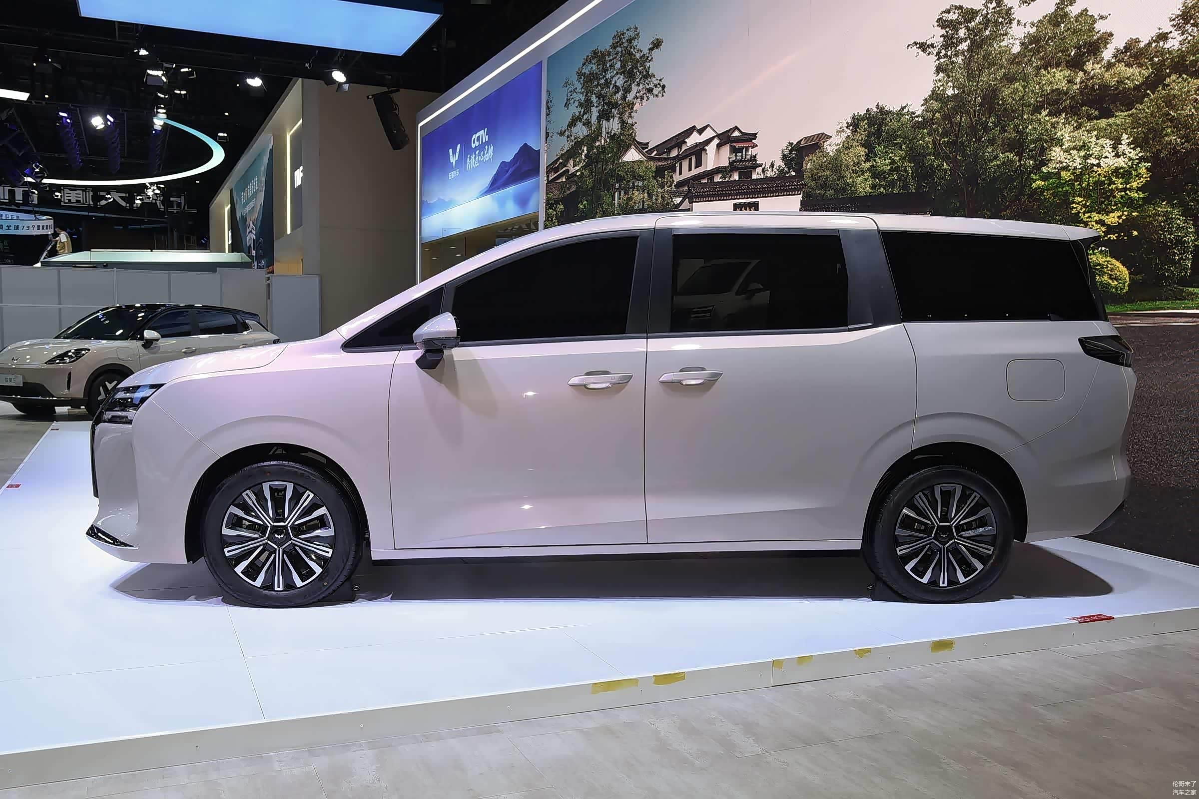 车身侧面,线条修长平直,车窗设计贯穿车身,看着就像悬浮式车顶。D柱是隐蔽式设计,车门把手是标准造型,还有侧滑门,滑道位置在C柱和D柱之间的侧窗下方,挺巧妙的。轮辋是17英寸双样式,看着就稳重大气。车身颜色有四种可选:烟霞灰、银霜白、耀石黑和暮山紫,都是用的巴斯夫2K清漆和8层制作工艺,质感绝对一流。尺寸方面,长宽高分别是4910/1850/1770mm,轴距2910mm,7座设计,大7座MPV的定位,家庭出行、商务接待、户外露营,啥需求都能满足。